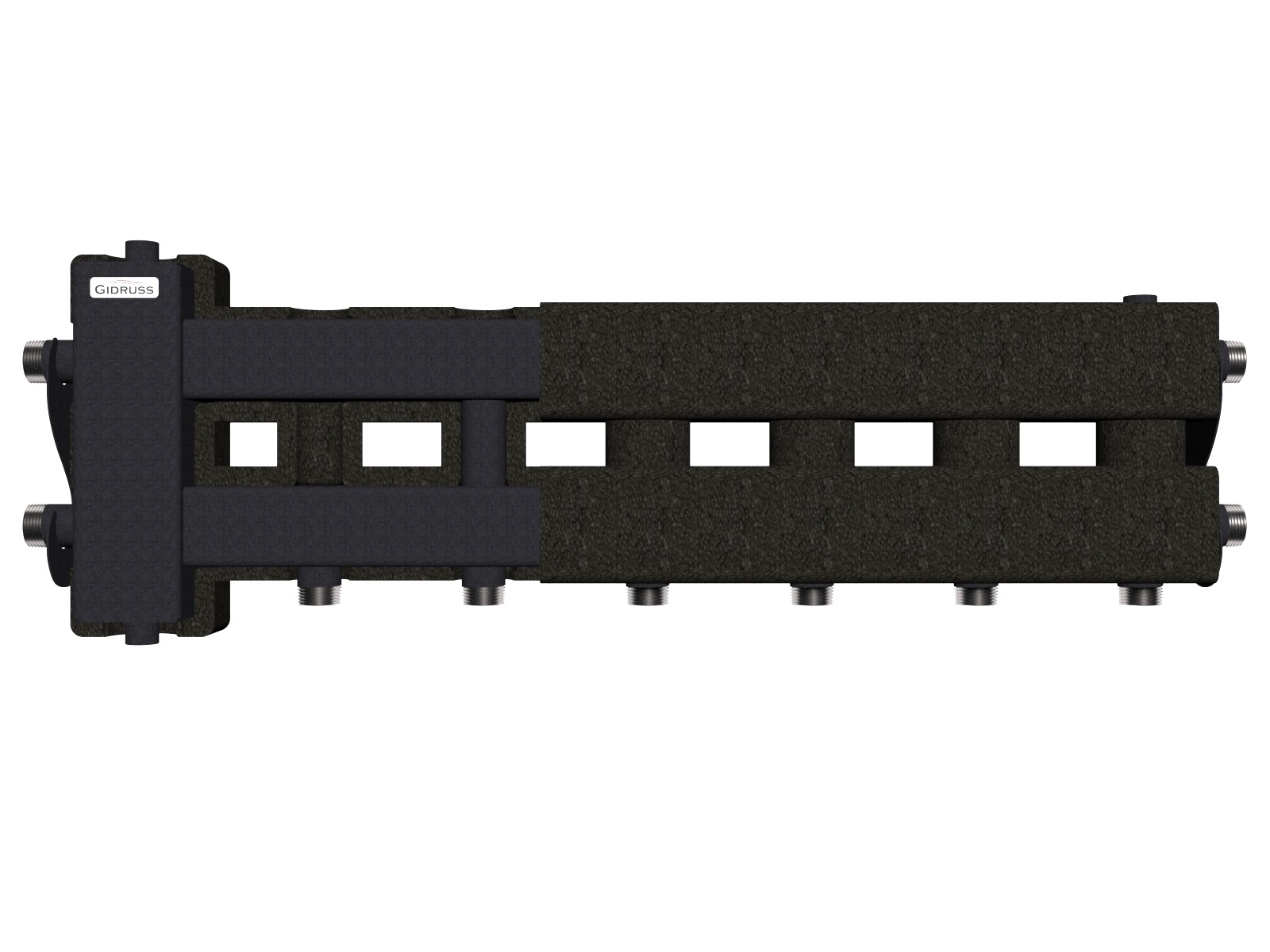Коллектор балансировочный Gidruss BM-60-4D.EPP (до 60 кВт, вх. G 1", 3+1 контура G 1",4D-кронштейны K.UMS, EPP-термоизоляция, ст. 09Г2С)