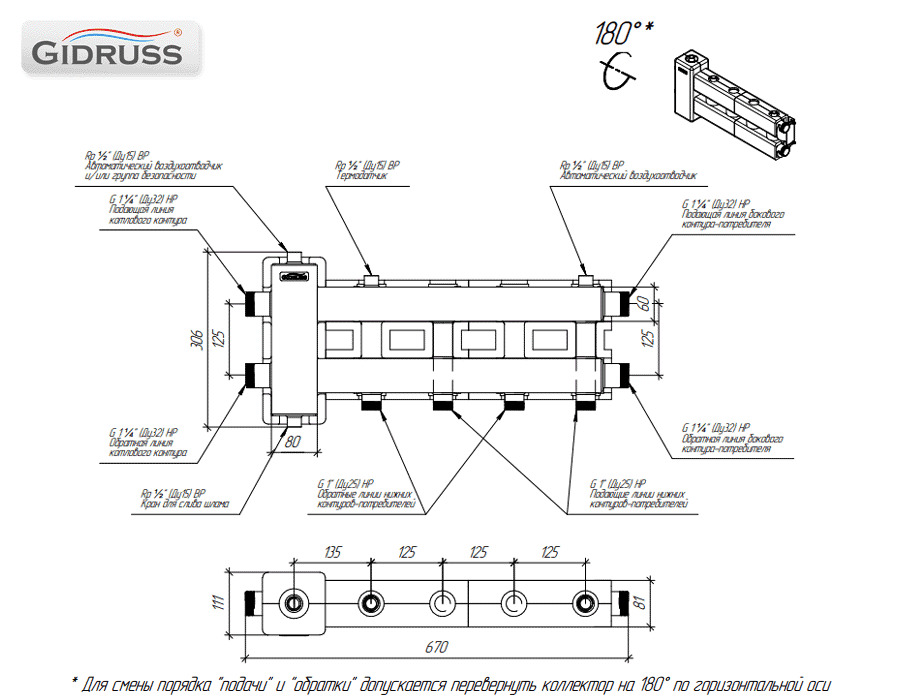 Коллектор балансировочный Gidruss BM-80-3D.EPP (до 80 кВт, подкл. котла G 1 1/4", 2 контура G 1", боковой контур G 1 1/4", 4D-кронштейны K.UMS, EPP-те