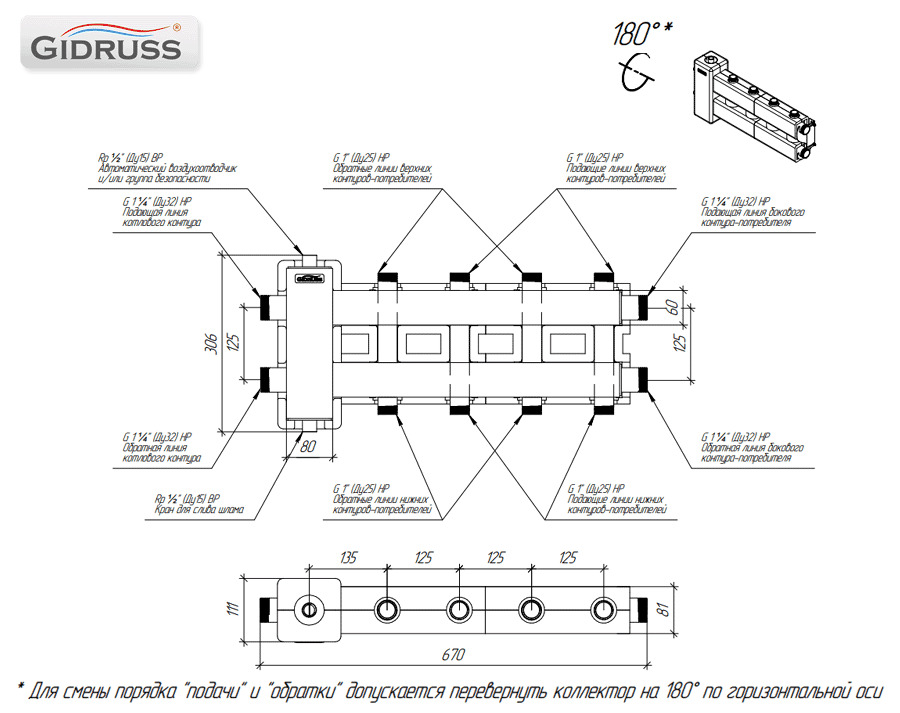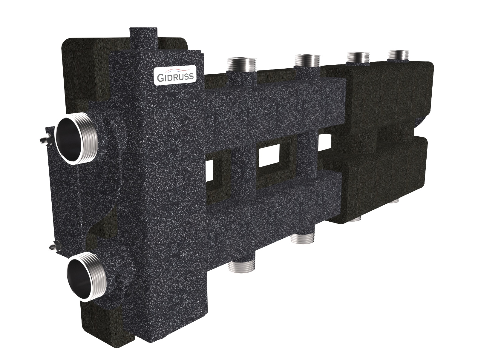 Коллектор балансировочный Gidruss BM-80-5DU.EPP (до 80 кВт, подкл. котла G 1 1/4", 2+2 контура G 1", боковой контур G 1 1/4", 4D-кронштейны K.UMS, EPP