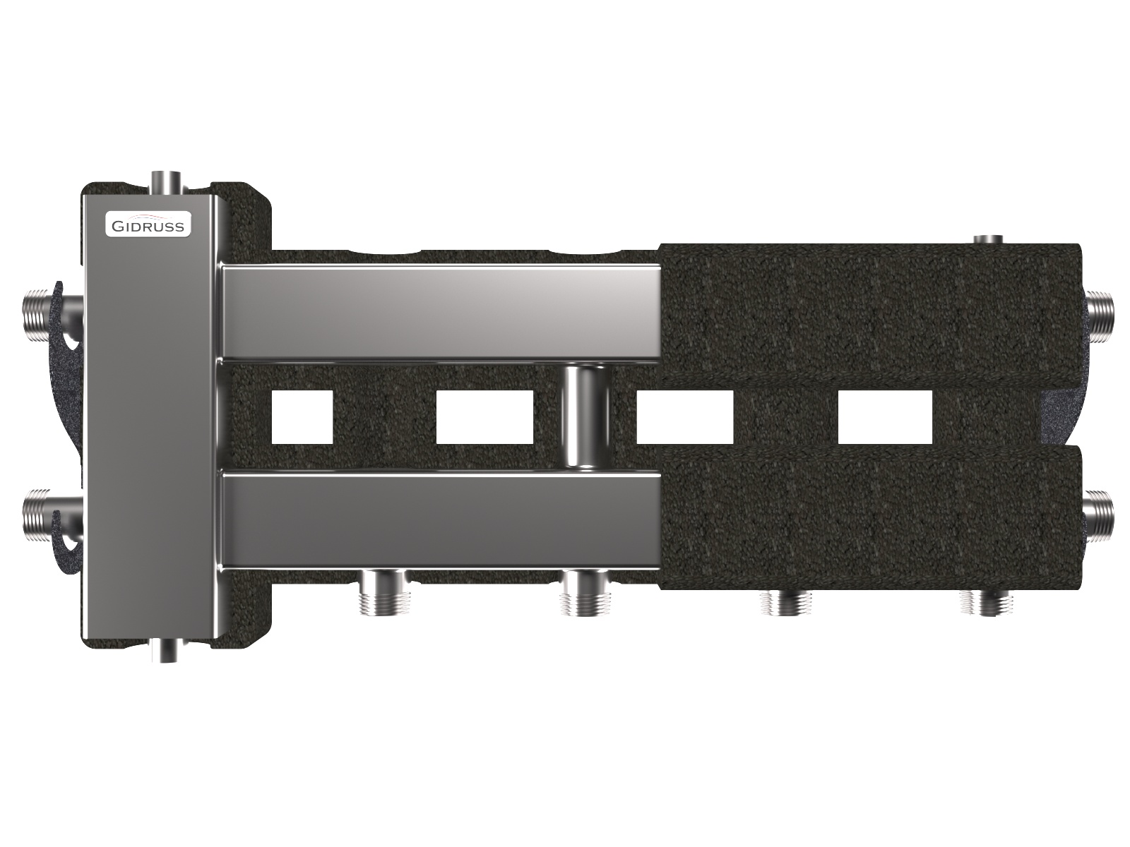 Коллектор балансировочный Gidruss BMSS-60-3D.EPP (до 60 кВт, вх. G 1", 2+1 контура G 1", 4D-кронштейны K.UMS, EPP-термоизоляция, нерж ст.)