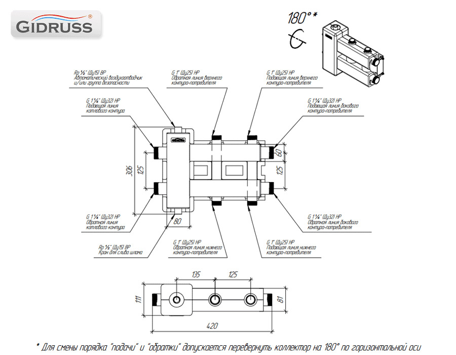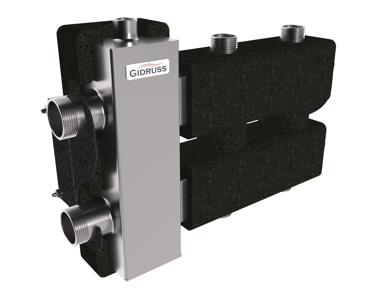 Коллектор балансировочный Gidruss BMSS-80-3DU.EPP (до 80 кВт, подкл. котла G 1 1/4", 1+1 контура G 1", боковой контур G 1 1/4", 4D-кронштейны K.UMS, E
