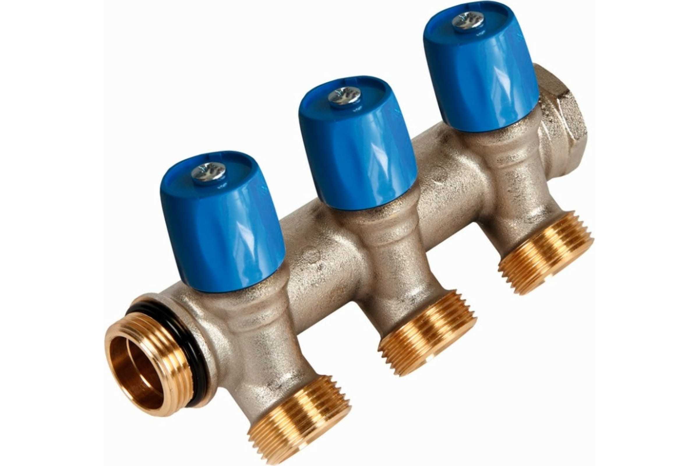 Коллектор VBS 3 отв. с синими вентилями 3/4"х3/4" НР под евроконус, Henco синие ручки (VBS050503-BL)