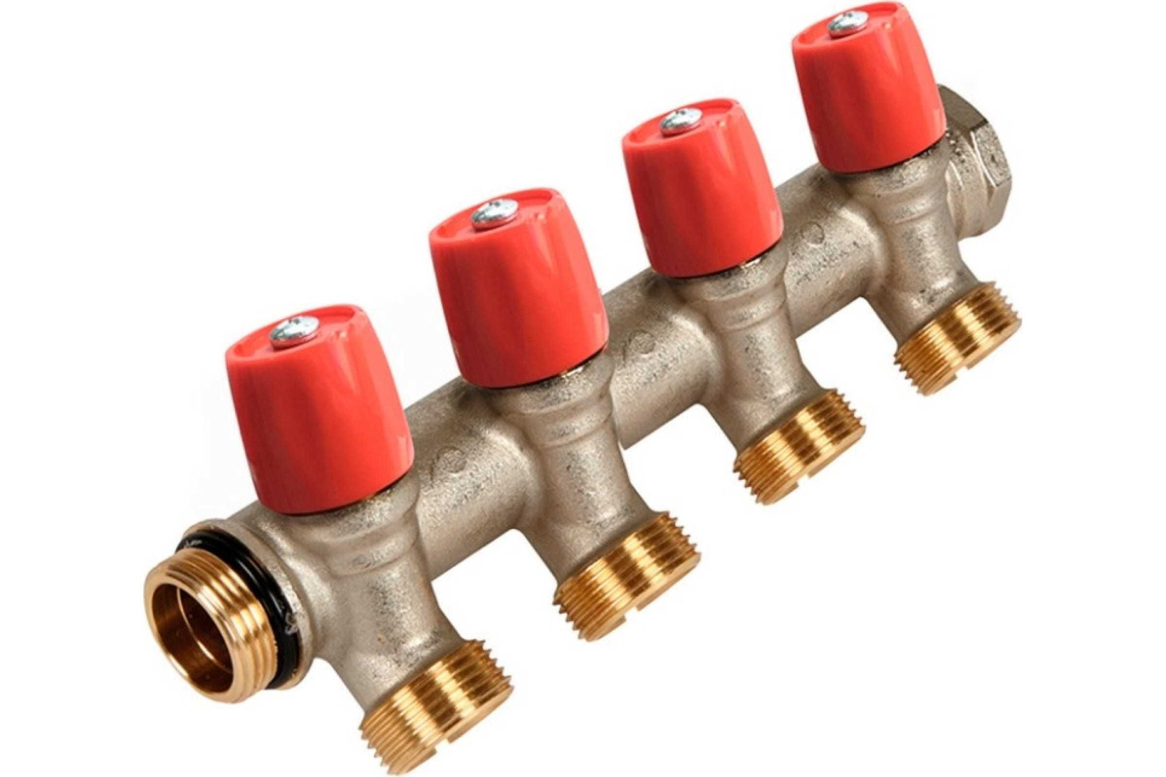 Коллектор VBS 4 отв. 3/4"х3/4" НР под евроконус, Henco красные ручки (VBS050504-RO)
