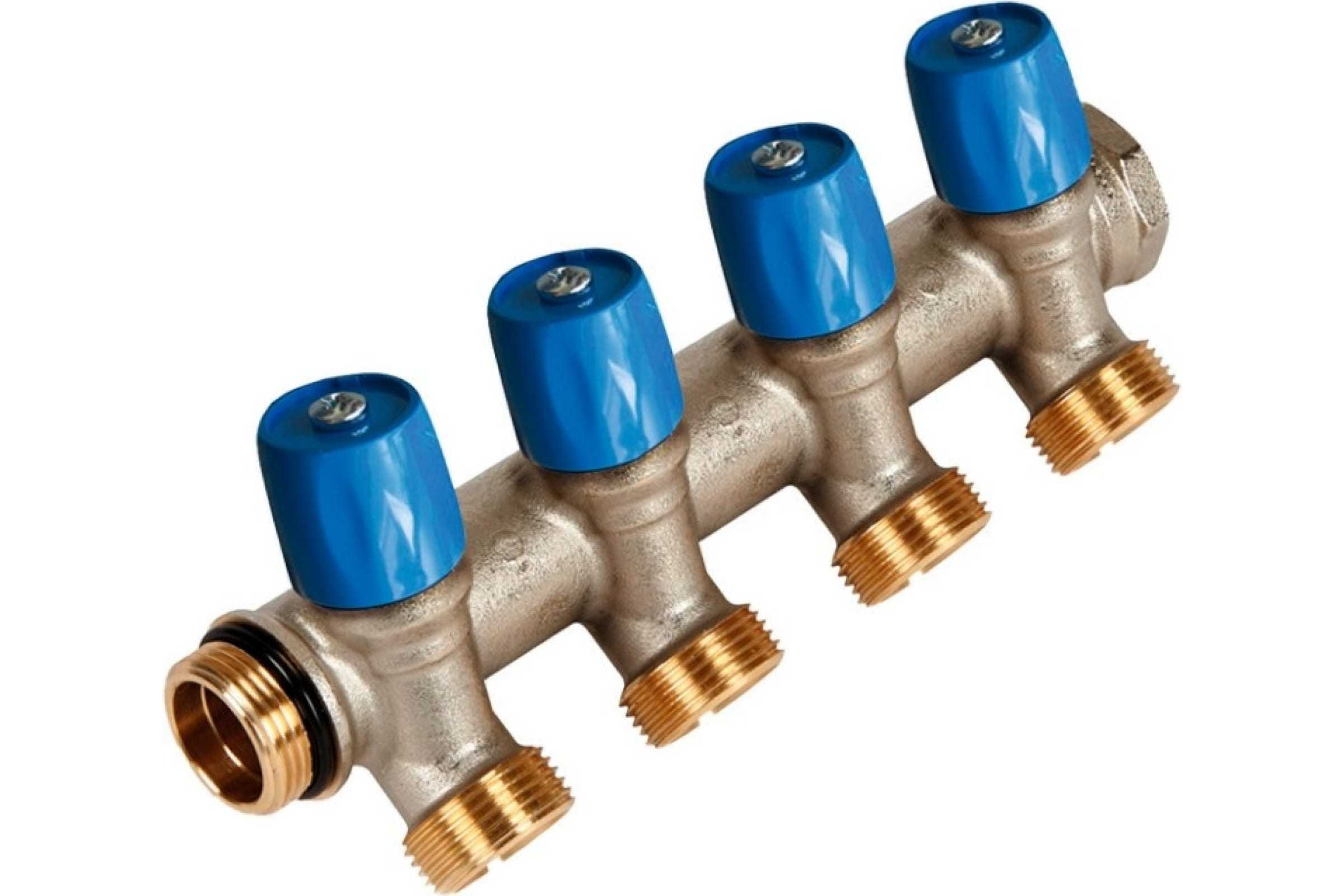 Коллектор HENCO VBS с синими вентилями, 3/4" НР под евроконус, 3/4" - 4xEK VBS050504-BL можно устанавливать вертикально, горизонтально и вверх ногами.