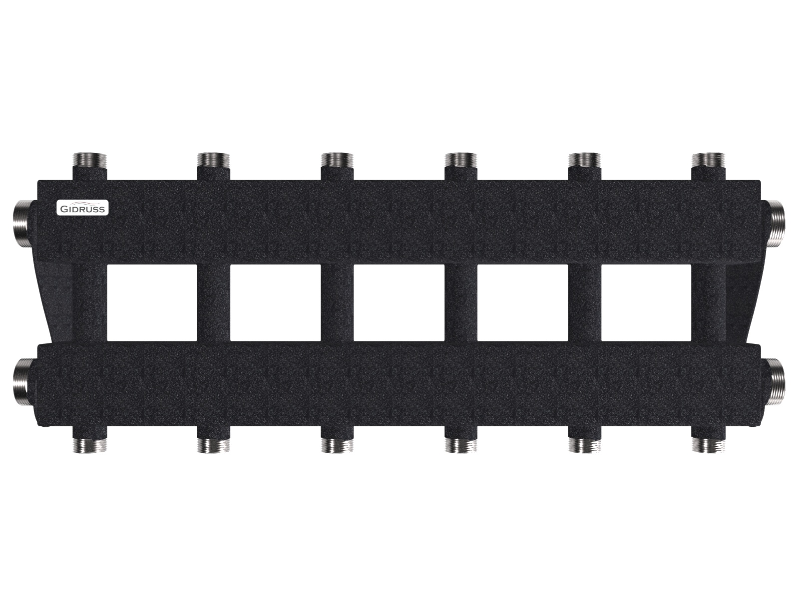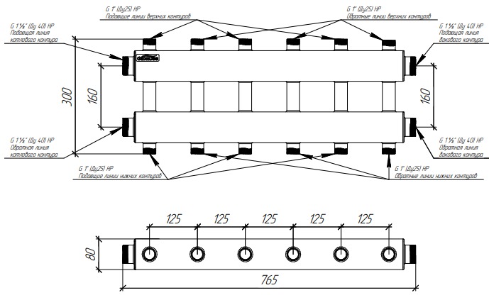 Коллектор модульный Gidruss MK-150-6DUx25 (до 150 кВт, 2 магистр. подкл. G 1 1/2", 3 контура G 1" вверх и 3 вниз, ст. 09Г2С)
