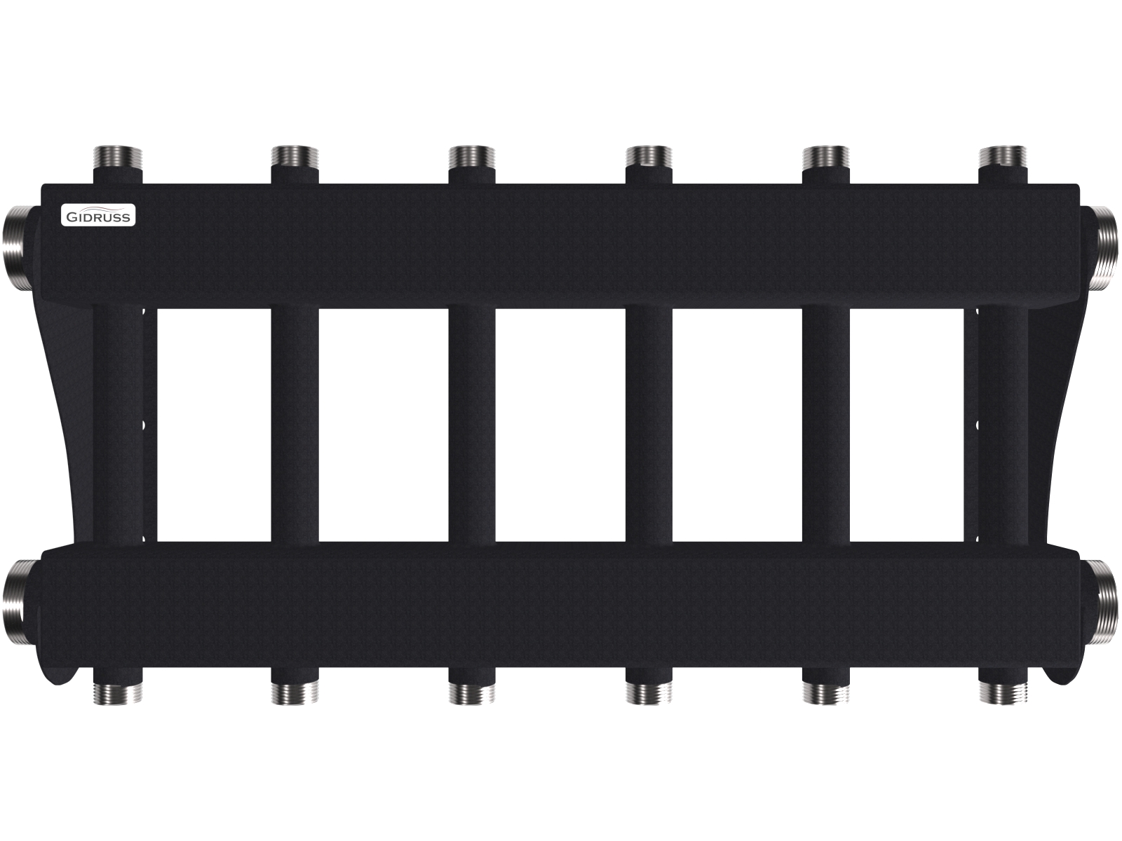 Коллектор модульный Gidruss MK-250-6DU (до 250 кВт, 2 магистр. подкл. G 2", 3 контура G 1" вверх и 3 вниз, ст. 09Г2С)