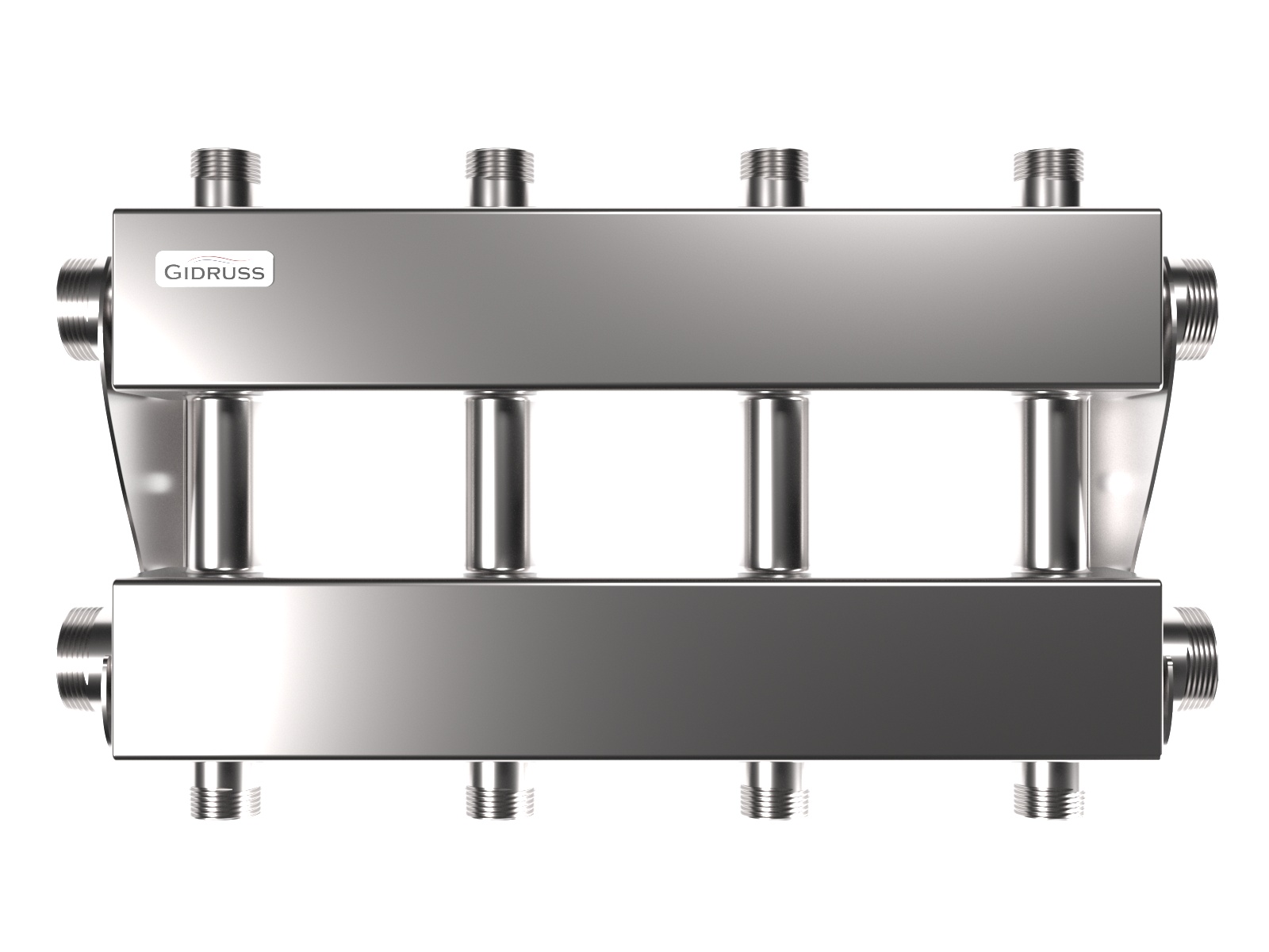 Коллектор модульный Gidruss MKSS-150-4DUx25 (до 150 кВт, 2 магистр. подкл. G 1 1/2", 2 контура G 1" вверх и 2 вниз, нерж ст.)
