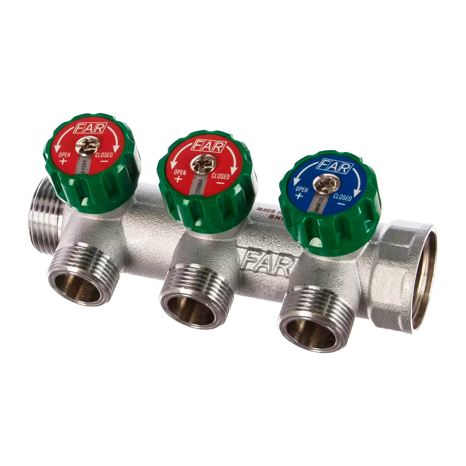 Латунный коллектор FAR имеет хромированное покрытие, которое увеличивает стойкость к коррозии и минимизирует воздействия внешней среды.