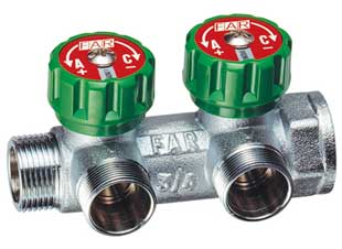 Коллектор проходной регулируемый FAR Multifar (3825 34) 3/4" НР-ВР, 2 отвода М24х19