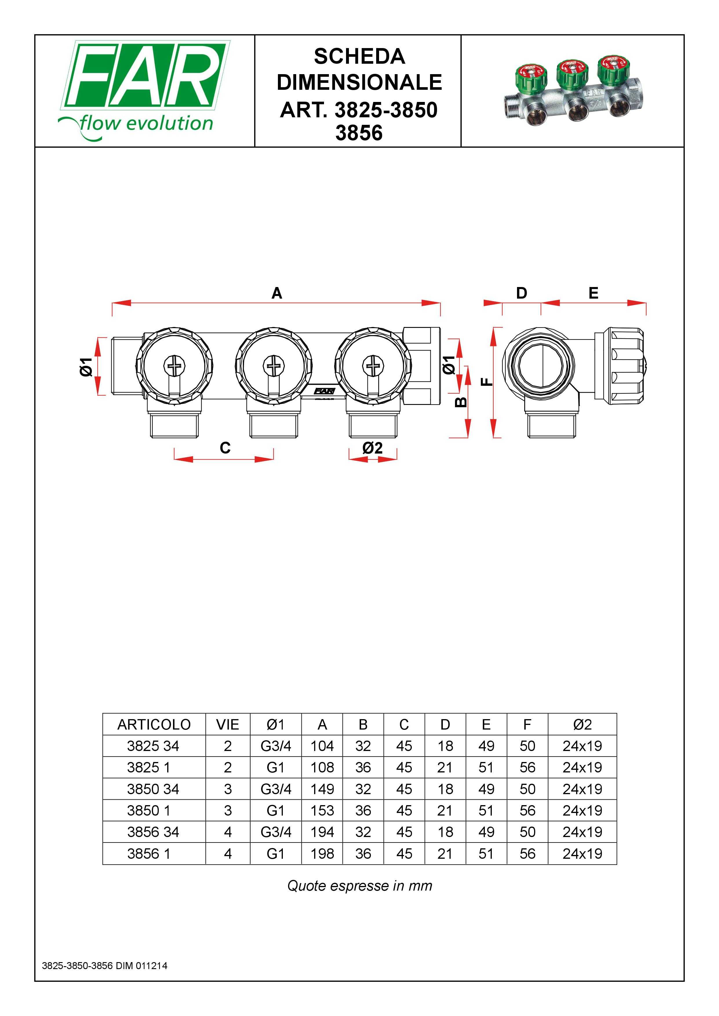 Коллектор проходной регулируемый FAR Multifar (3856 C1) 1" НР-ВР, 4 отвода М24х19