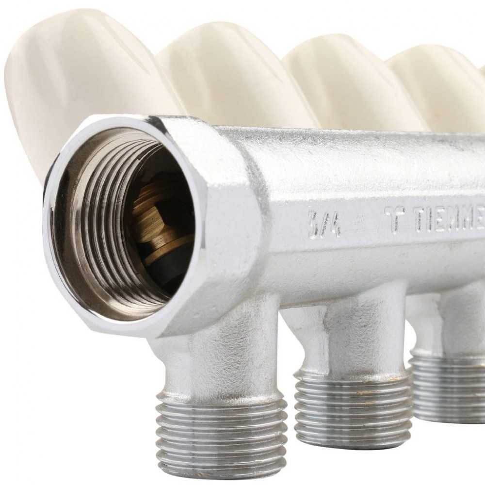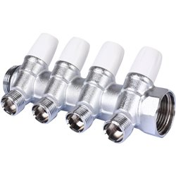 Коллектор проходной регулируемый Tiemme Maxima (1860004 / 1866K) 3/4" ВР-НР , 4 отвода 1/2" евроконус