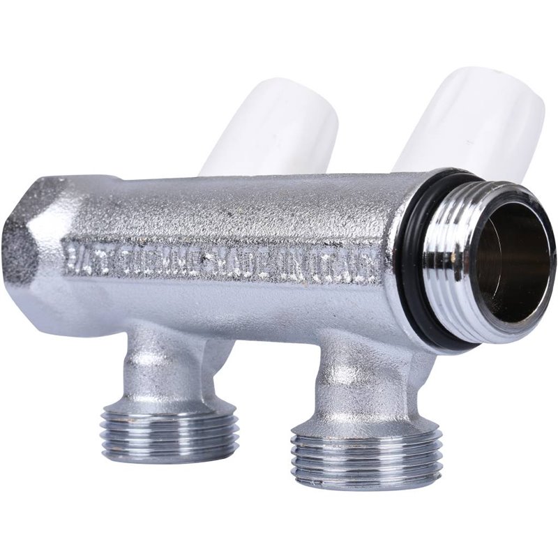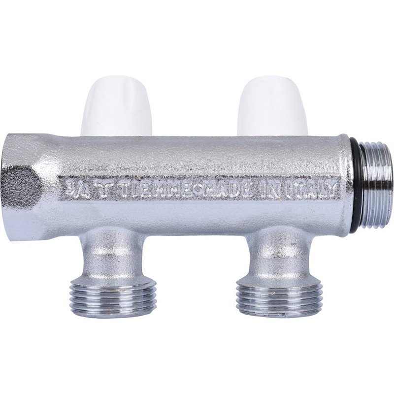 Распределительные коллекторы TIEMME MAXIMA оснащены запорными кранами MAXIMA. Количество выходов варьируется от 2 до 5, материал - хромированная латунь. Резьба с уплотнительным кольцом.
