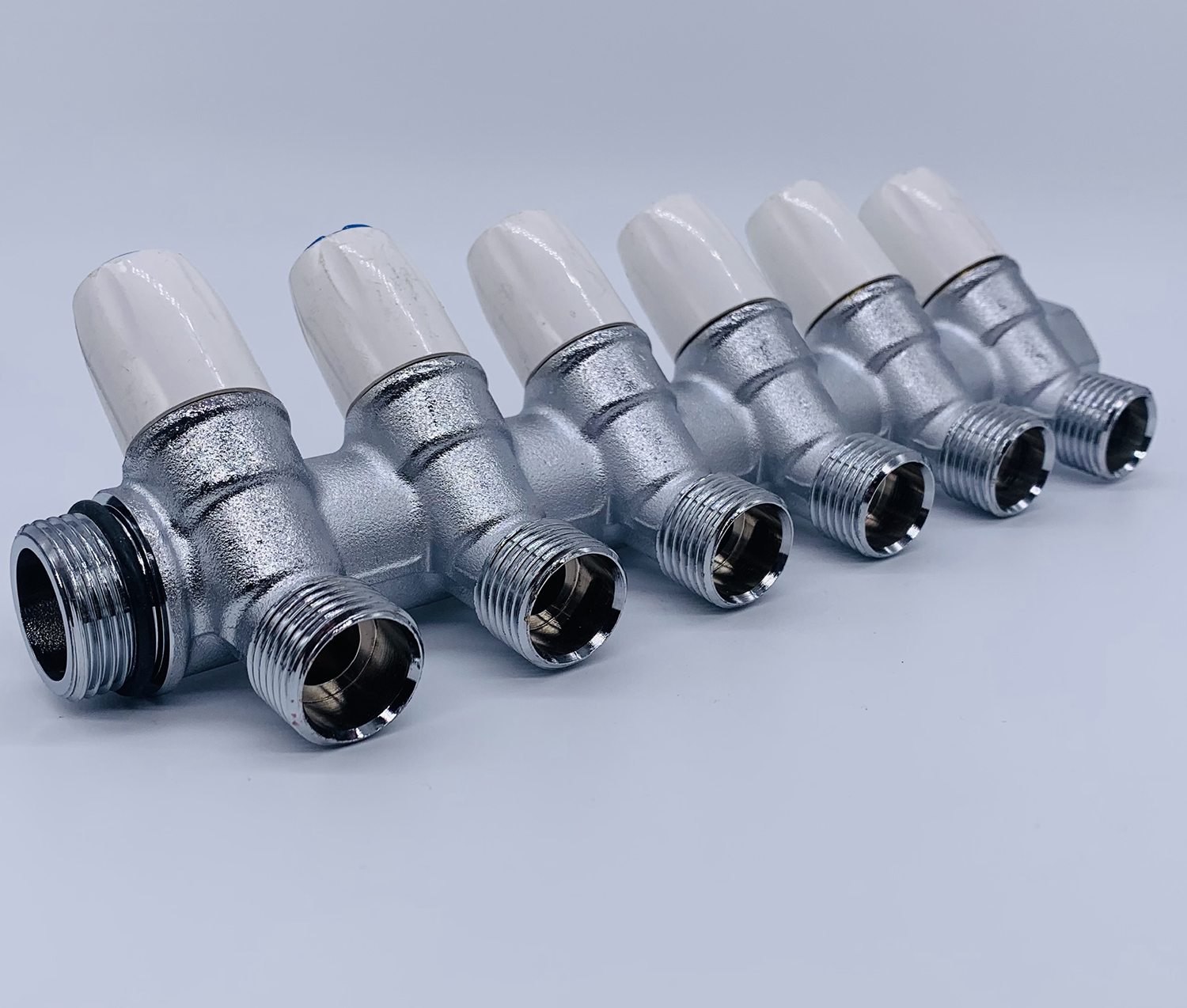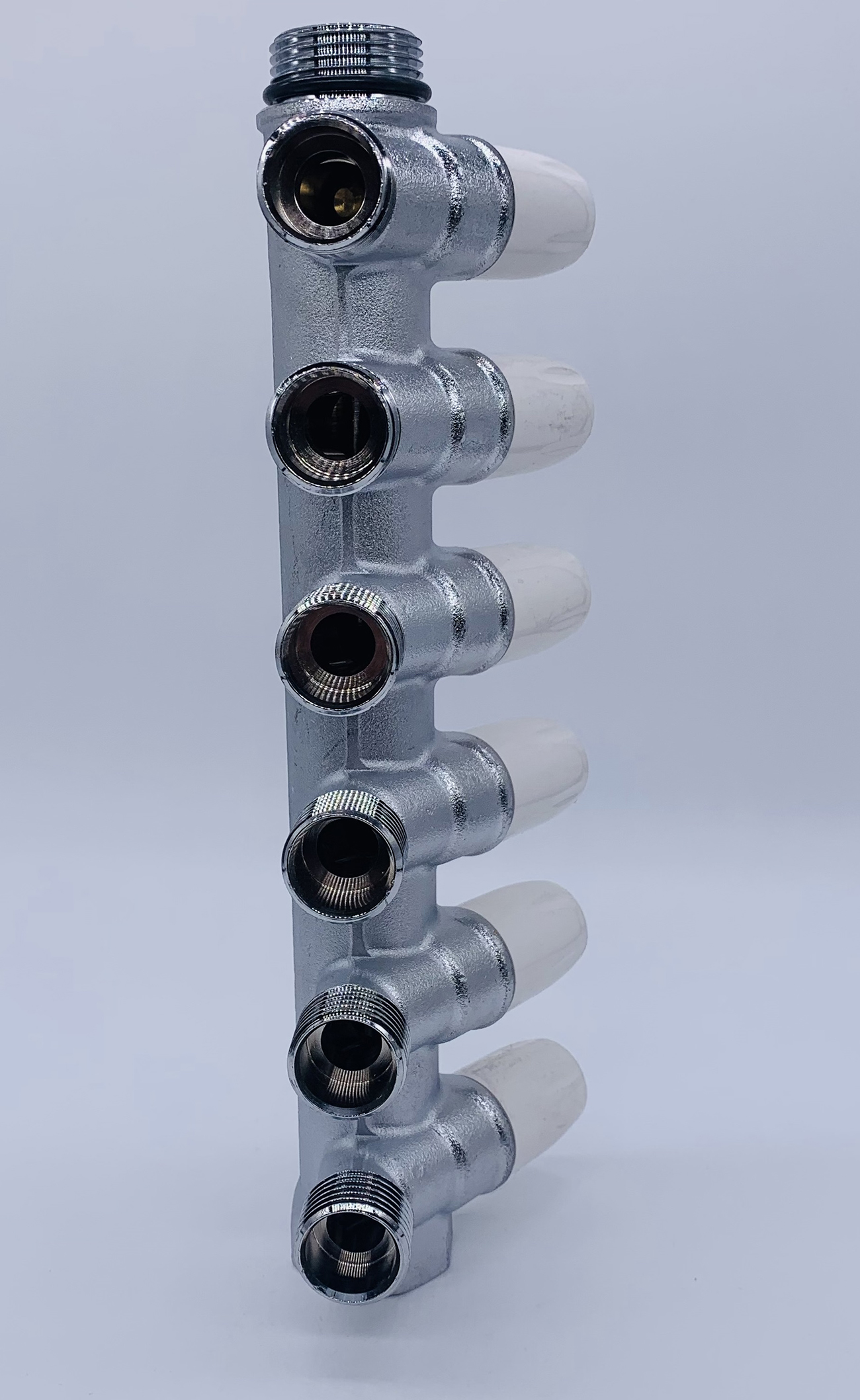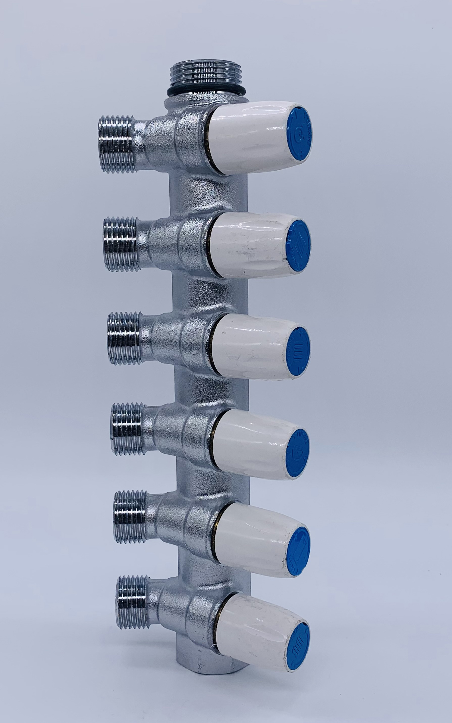 Распределительные коллекторы TIEMME MAXIMA оснащены запорными кранами MAXIMA. Количество выходов варьируется от 2 до 6, материал - хромированная латунь. Резьба с уплотнительным кольцом.