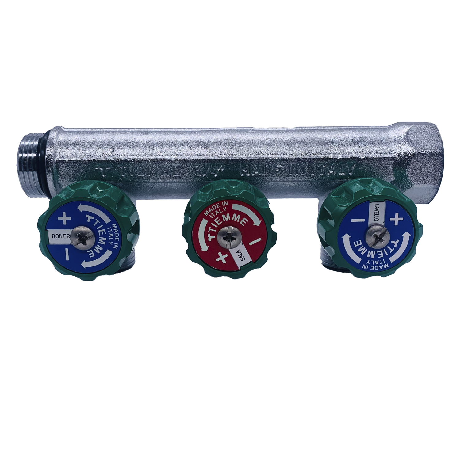 Коллектор проходной регулируемый Tiemme Maxima Corner (1850002 / 1871K) 3/4" ВР-НР , 3 отвода 1/2" евроконус