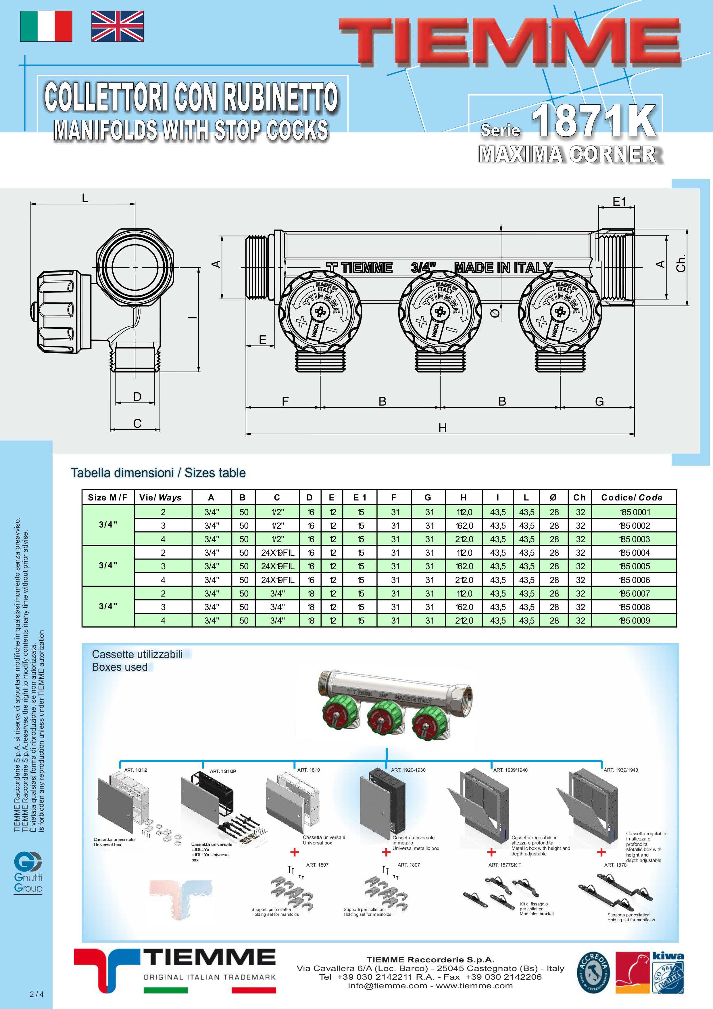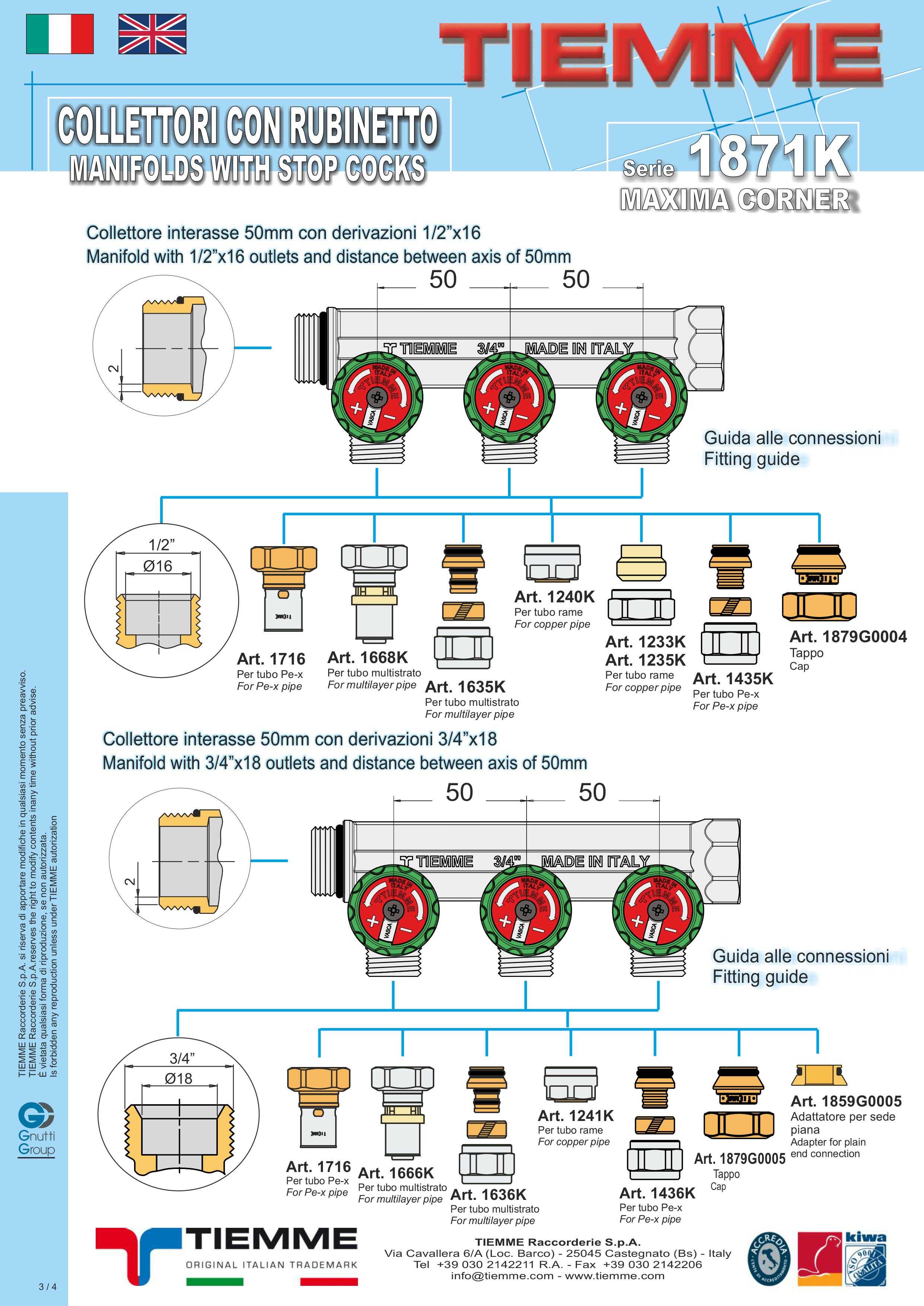 Распределительные коллекторы Tiemme МAXIMA CORNER 1871K обычно используются в сетях распределения горячей и холодной воды.