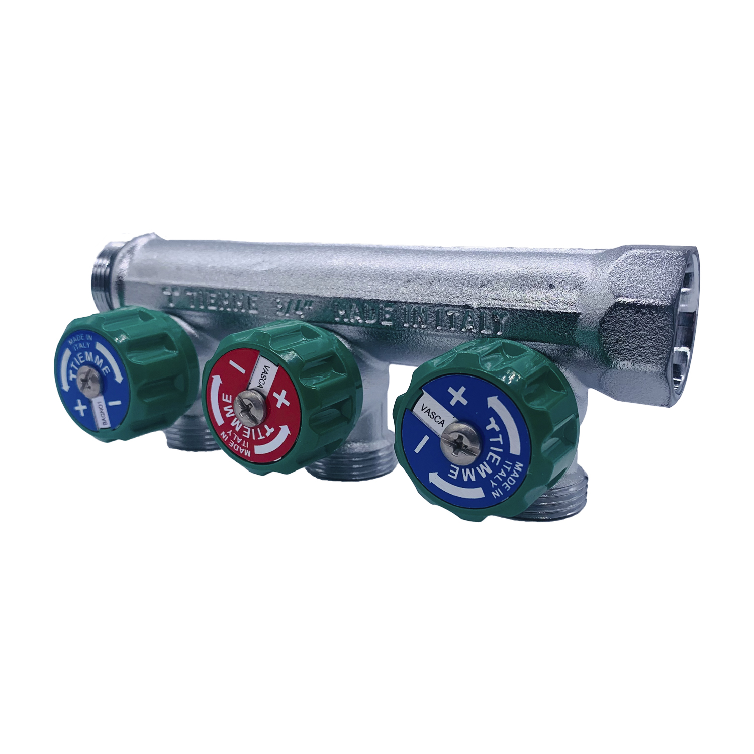 Коллектор проходной регулируемый Tiemme Maxima Corner (185008 / 1871K) 3/4" ВР-НР , 3 отвода 3/4" евроконус