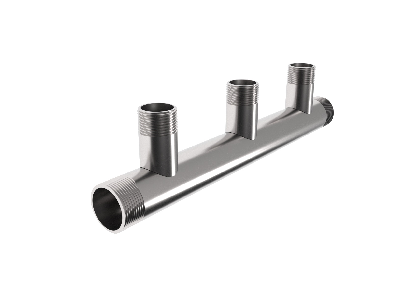 Три выхода на потребители с резьбой G 1? длинной 20 мм с возможностью зафиксировать отсечные краны с помощью контргайки, что намного надежней простого "льняного" уплотнения с недоворотом