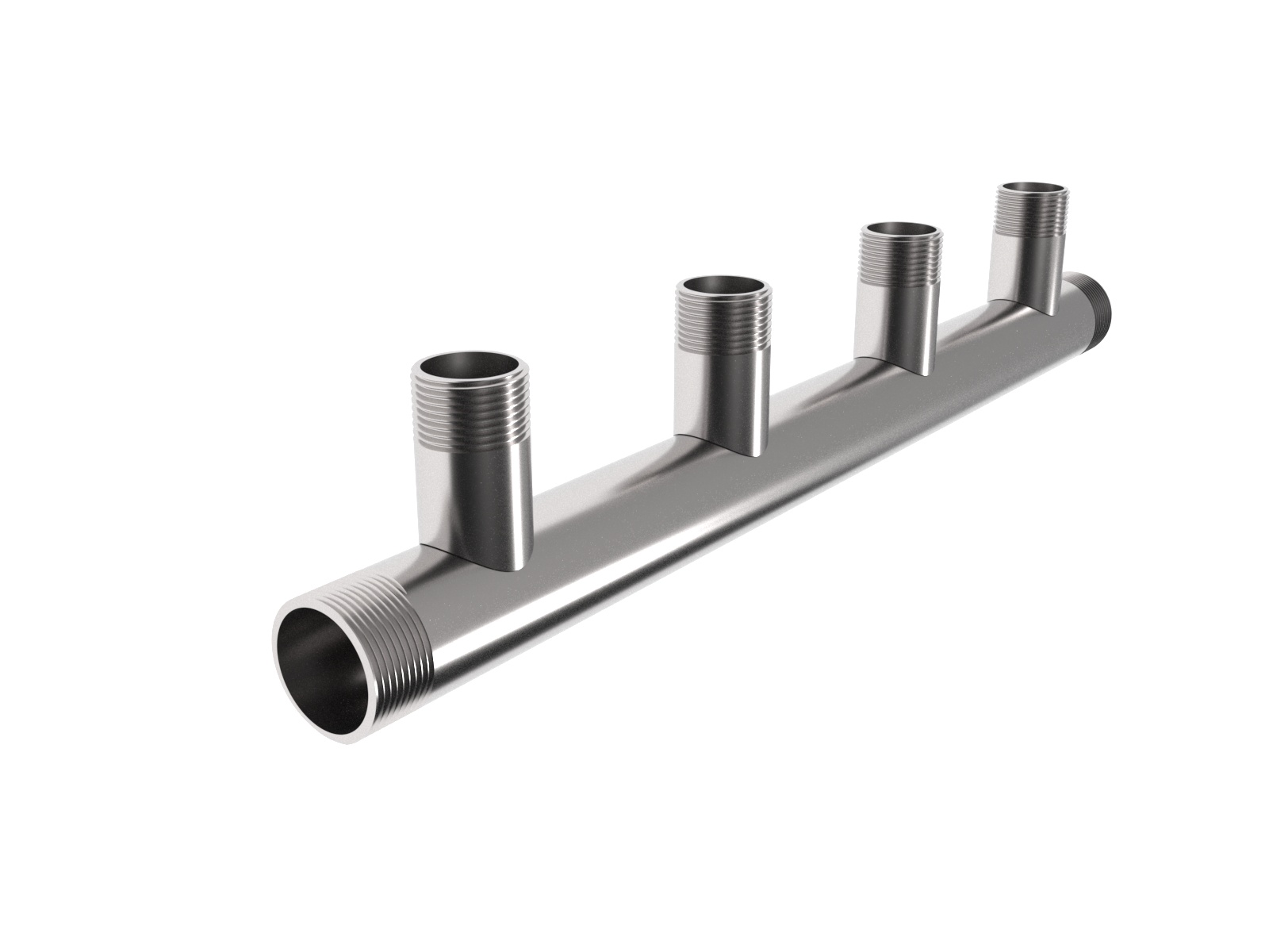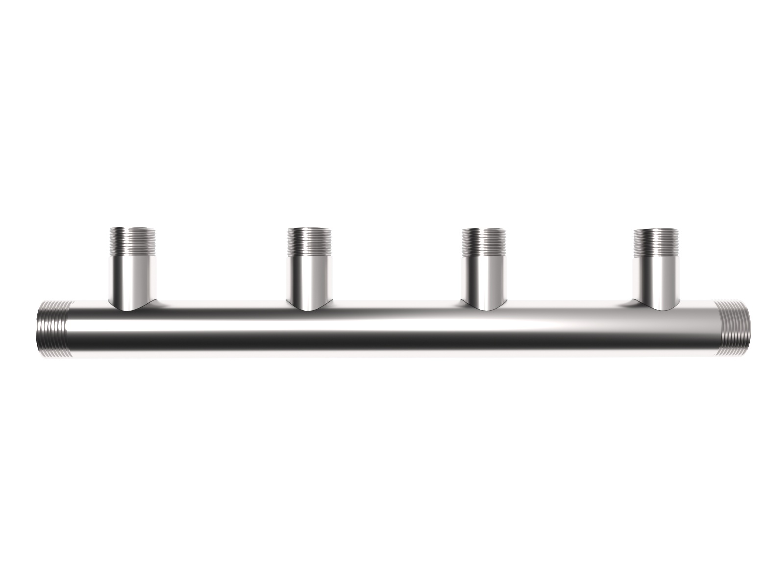 Четыре выхода на потребители с резьбой G 1? длинной 20 мм с возможностью зафиксировать отсечные краны с помощью контргайки, что намного надежней простого "льняного" уплотнения с недоворотом