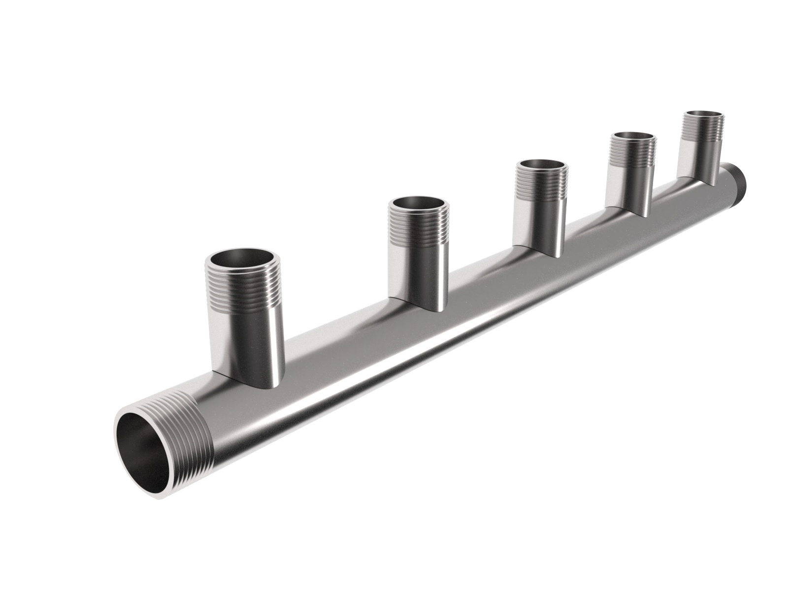 Пять выходов на потребители с резьбой G 1? длинной 20 мм с возможностью зафиксировать отсечные краны с помощью контргайки, что намного надежней простого "льняного" уплотнения с недоворотом