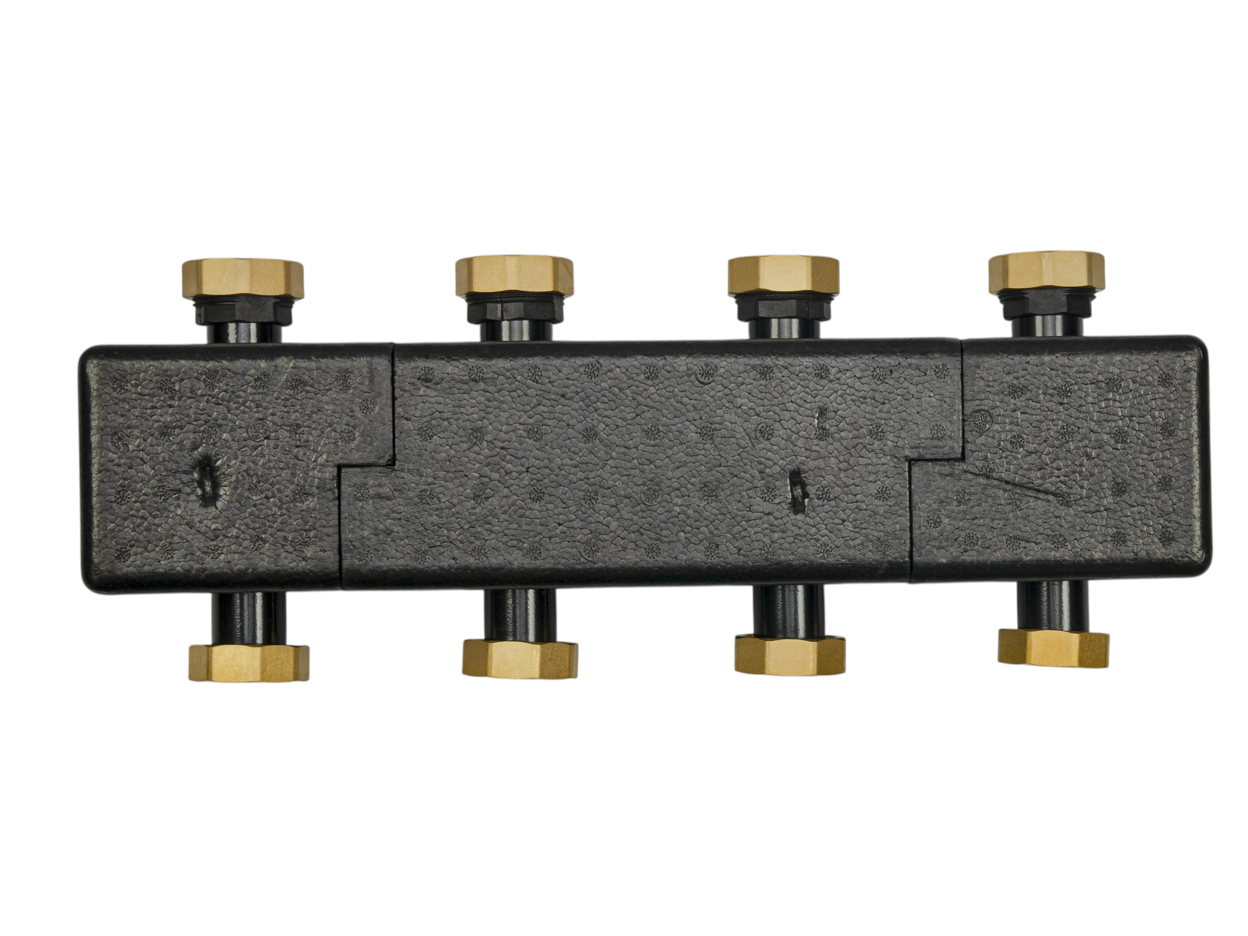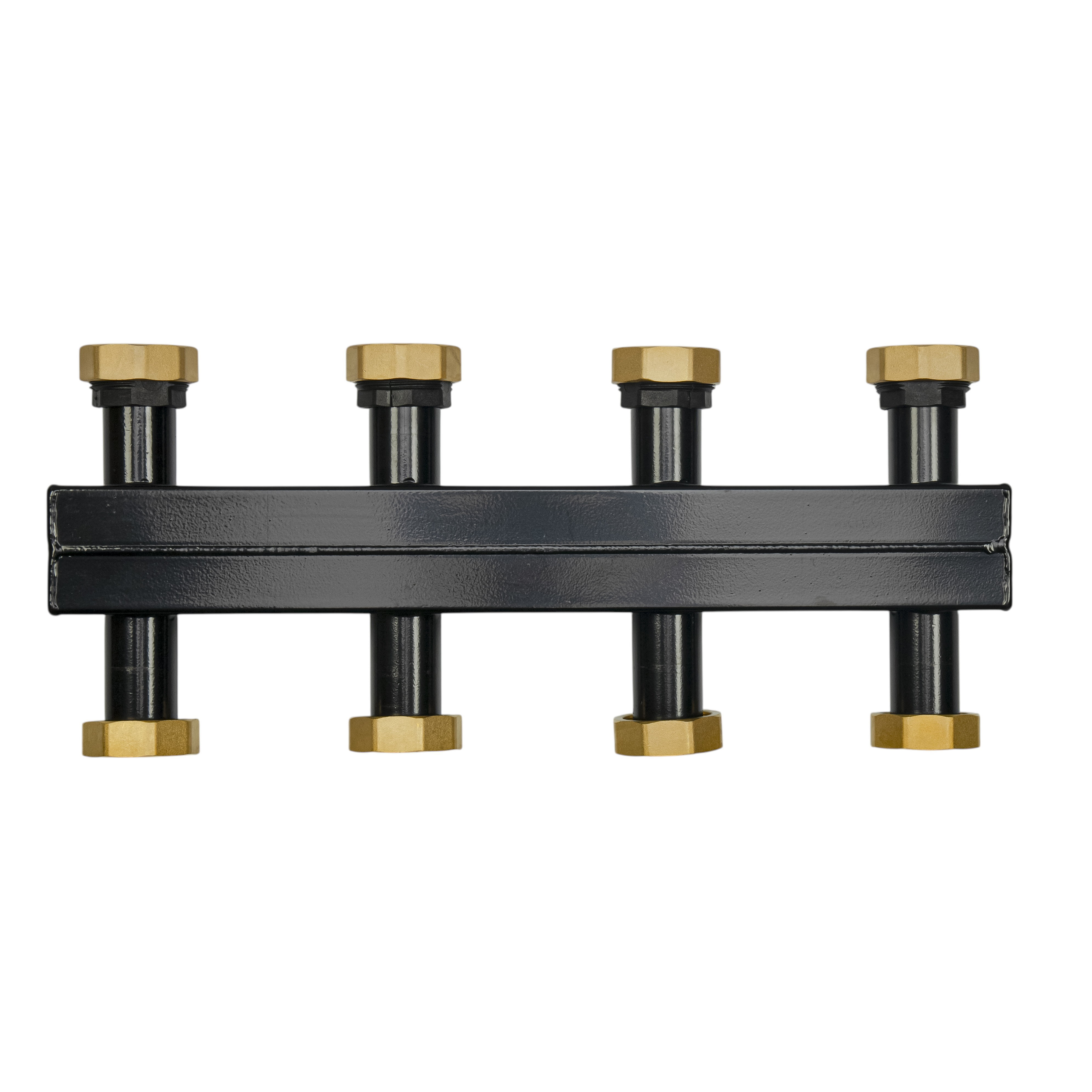 Коллекторы имеют диаметр подключения 25 мм и рассчитаны на давление до 6 бар. Они выдерживают температуру теплоносителя до 110°C и способны обеспечивать расход до 3 м3/ч, что соответствует тепловой мощности до 70 кВт при перепаде температуры 20°C. Толщина стенок корпуса составляет 3 мм, что обеспечивает высокую прочность и долговечность изделия.