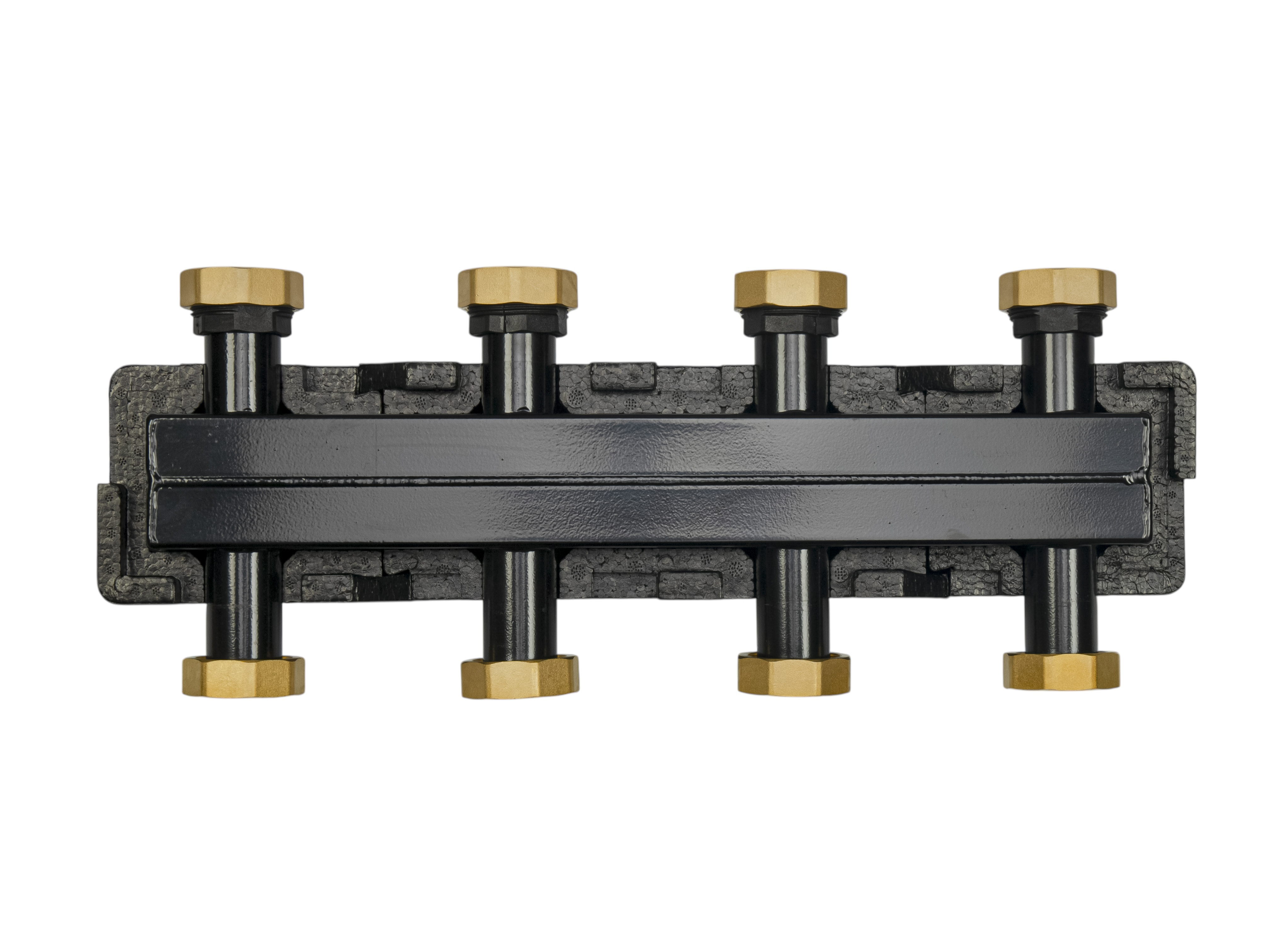 Распределительные коллекторы Okseler с диаметром 1 1/2"" обеспечивают полное термогидравлическое разделение подачи и обратки. Это делает их идеальными для котельных систем, где требуется равномерное распределение теплоносителя между несколькими отопительными контурами с разными параметрами, такими как расход, температура и гидравлическое сопротивление.