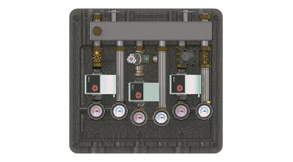 Конструкция позволяет подключить 2 насосные группы (в комплект не входят). Имеется встроенная гидравлическая стрелка, которая отвечает за разделение котлового контура и отопительных контуров.