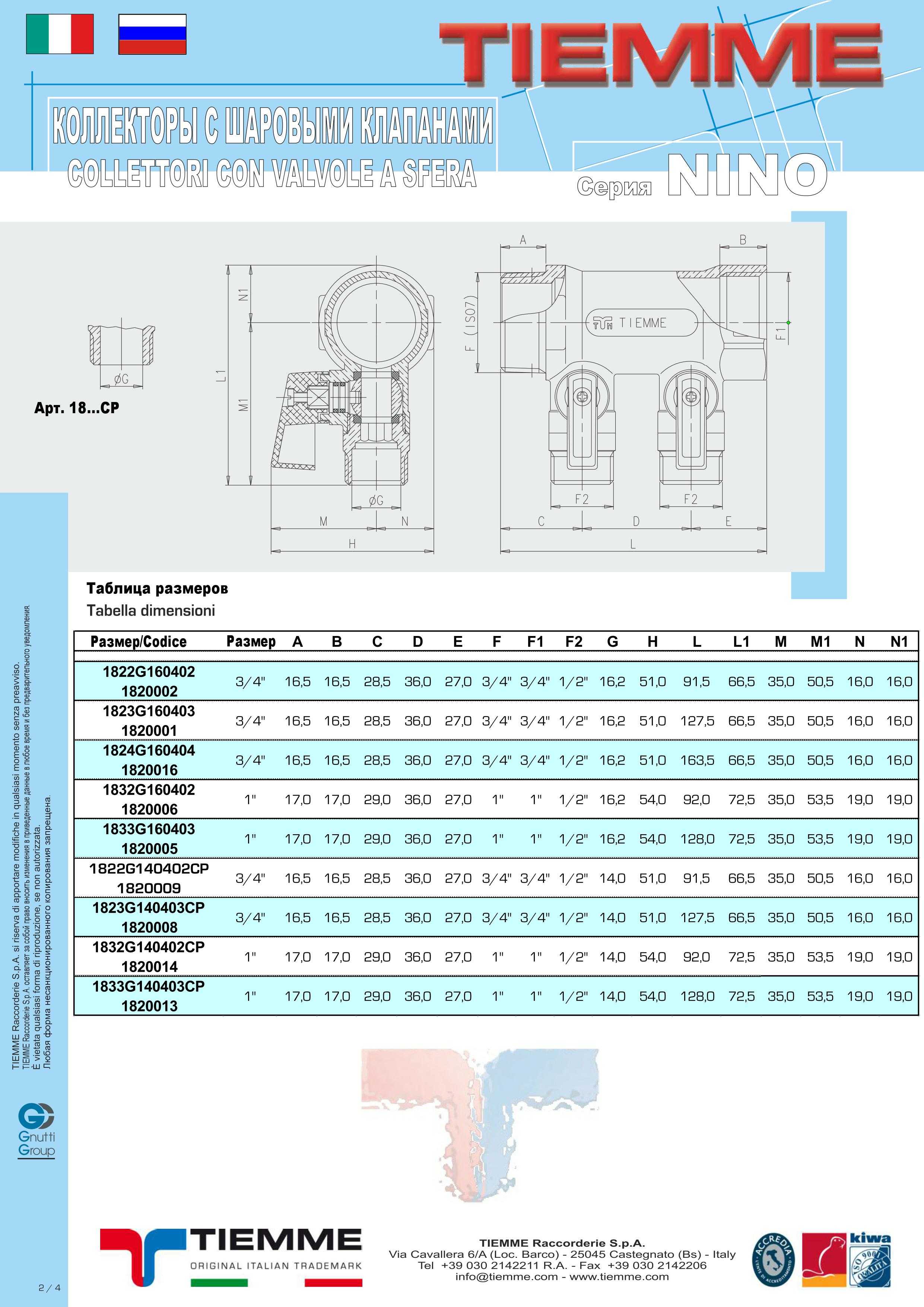 - Резьбы: наружная - UNI ISO 7/1 R (коническая), внутренняя - UNI ISO 7/1 Rp (цилиндрическая)