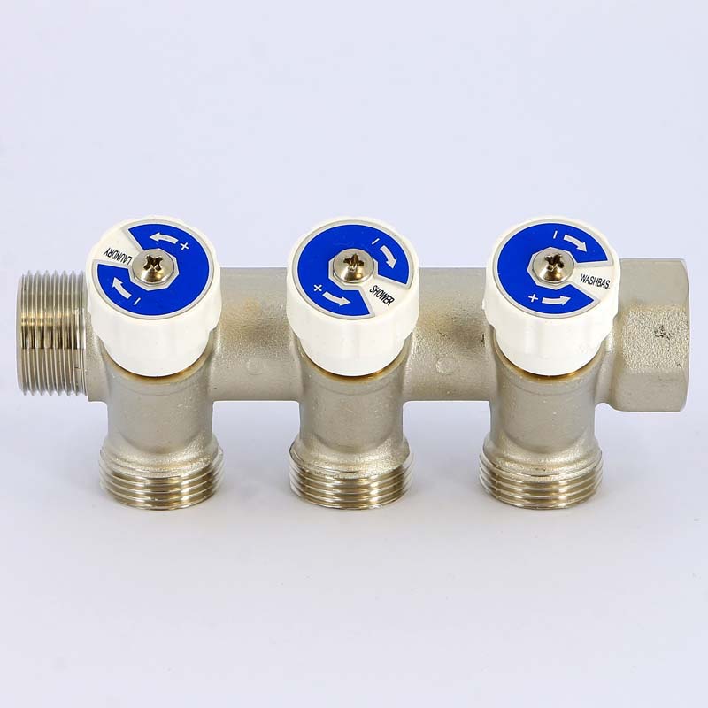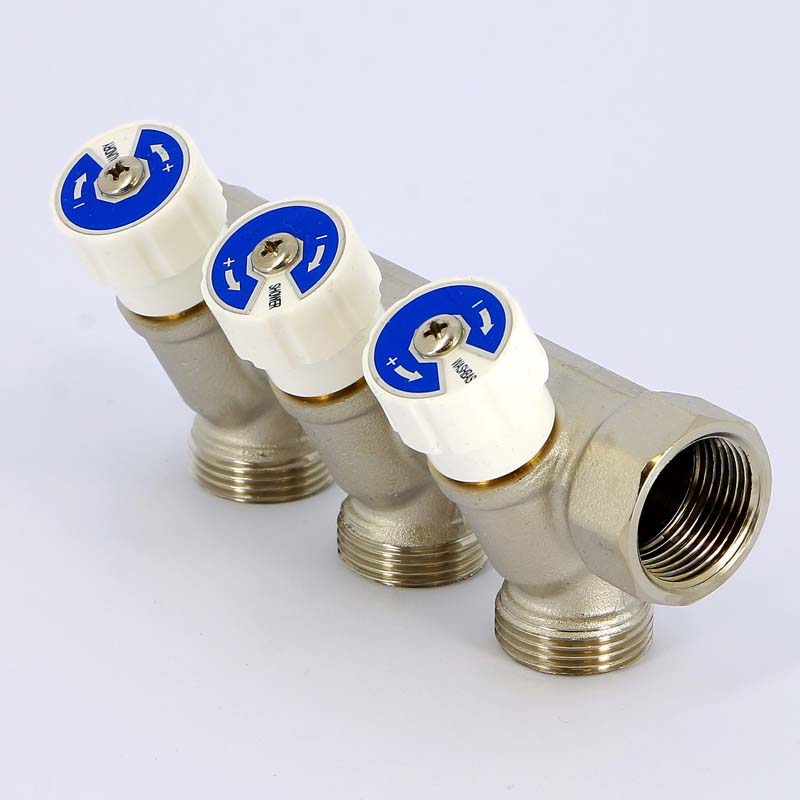 Штампованные коллекторы данной серии имеют два, три или четыре отвода. Каждый отвод оснащен запорно-регулирующим вентилем, позволяющим отключить или отрегулировать поток воды. Такая конструкция позволяет получить коллектор с необходимым количеством отводов, просто соединив между собой несколько коллекторов. Каждый коллектор подвергается в заводских условиях проверке на функционирование и герметичность уплотнений. Для герметизации используются уплотнительные элементы из EPDM.