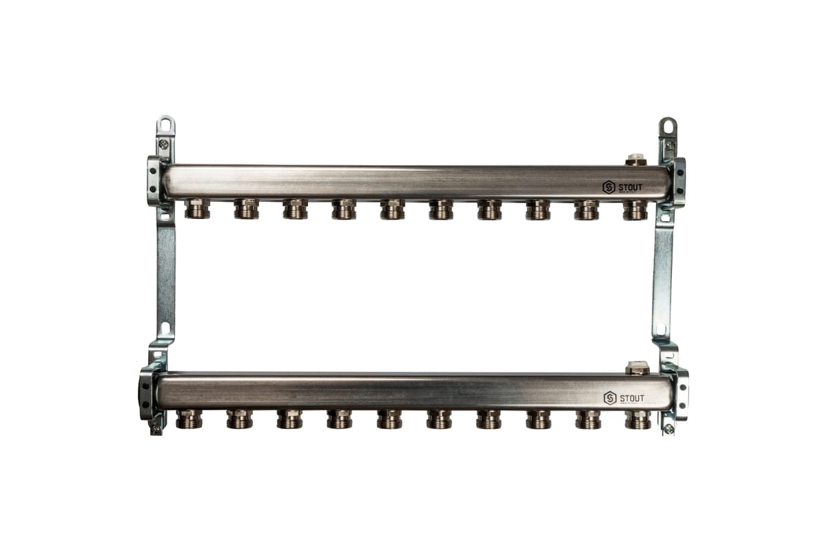 Коллектор из нержавеющей стали для радиаторной разводки STOUT используется для подачи и распределения теплоносителя по циркуляционным кольцам. Данная модель подойдет для подключения к системам радиаторного отопления или теплого пола.