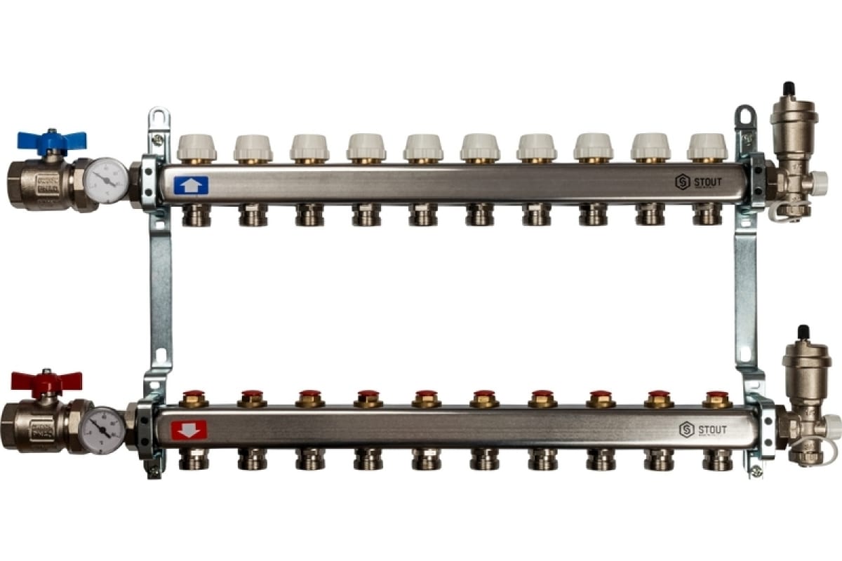 Коллекторная группа 10 отводов 1"x3/4"(18)EK в сборе без расходомеров Stout (нерж.сталь) (SMS-0912-000010)