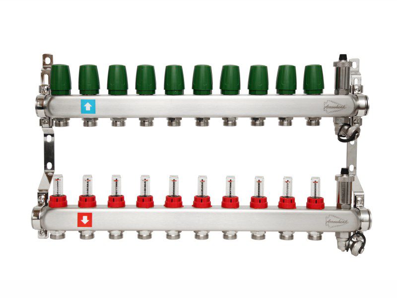 Коллекторы из нержавеющей стали ARROWHEAD играют ключевую роль в системах отопления и теплых полов, обеспечивая эффективное распределение теплоносителя, что способствует стабильной работе гидравлики системы. Принцип действия коллекторов основан на следующих аспектах: