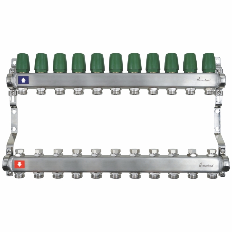 Коллекторная группа 10 отводов 1"х3/4"(евроконус) Arrowhead с настроечными клапанами (нерж.сталь) (CS-300-10)
