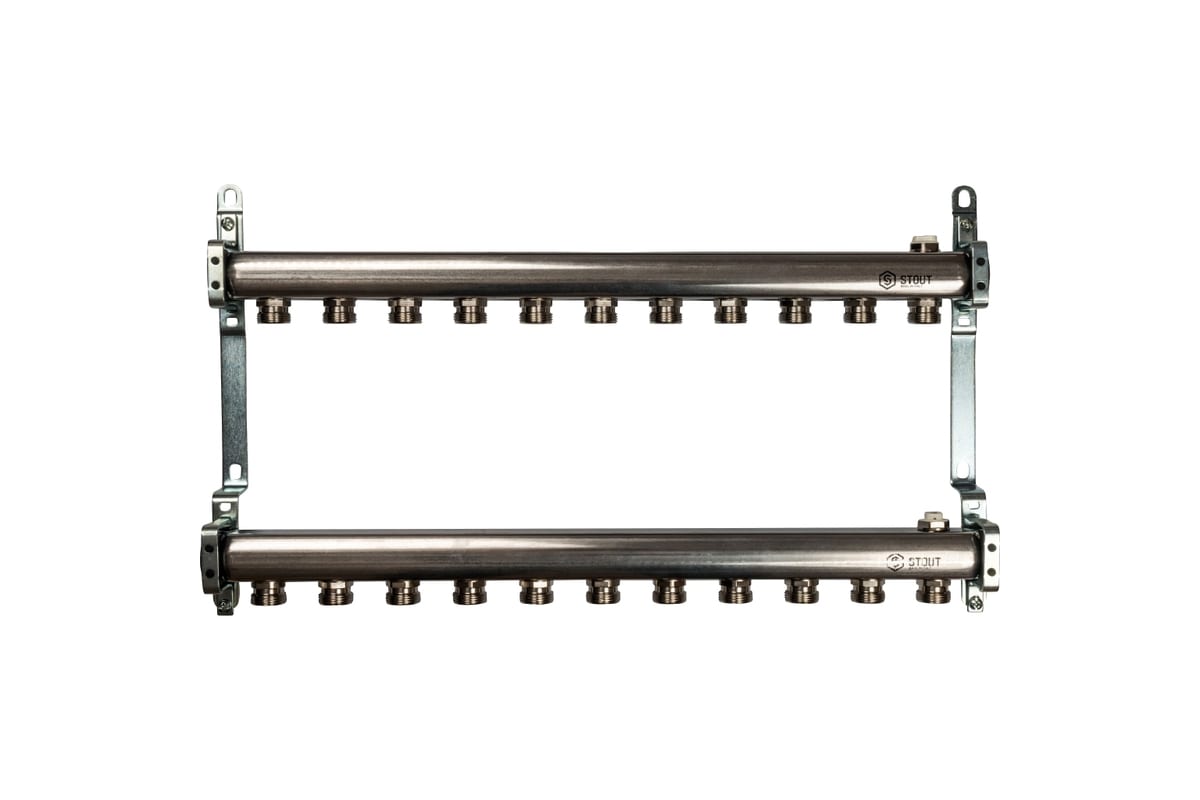 Коллектор из нержавеющей стали для радиаторной разводки STOUT используется для подачи и распределения теплоносителя по циркуляционным кольцам. Данная модель подойдет для подключения к системам радиаторного отопления или теплого пола.