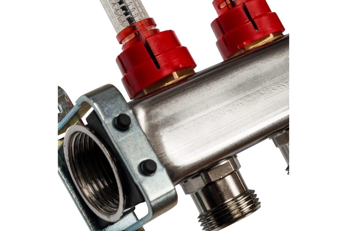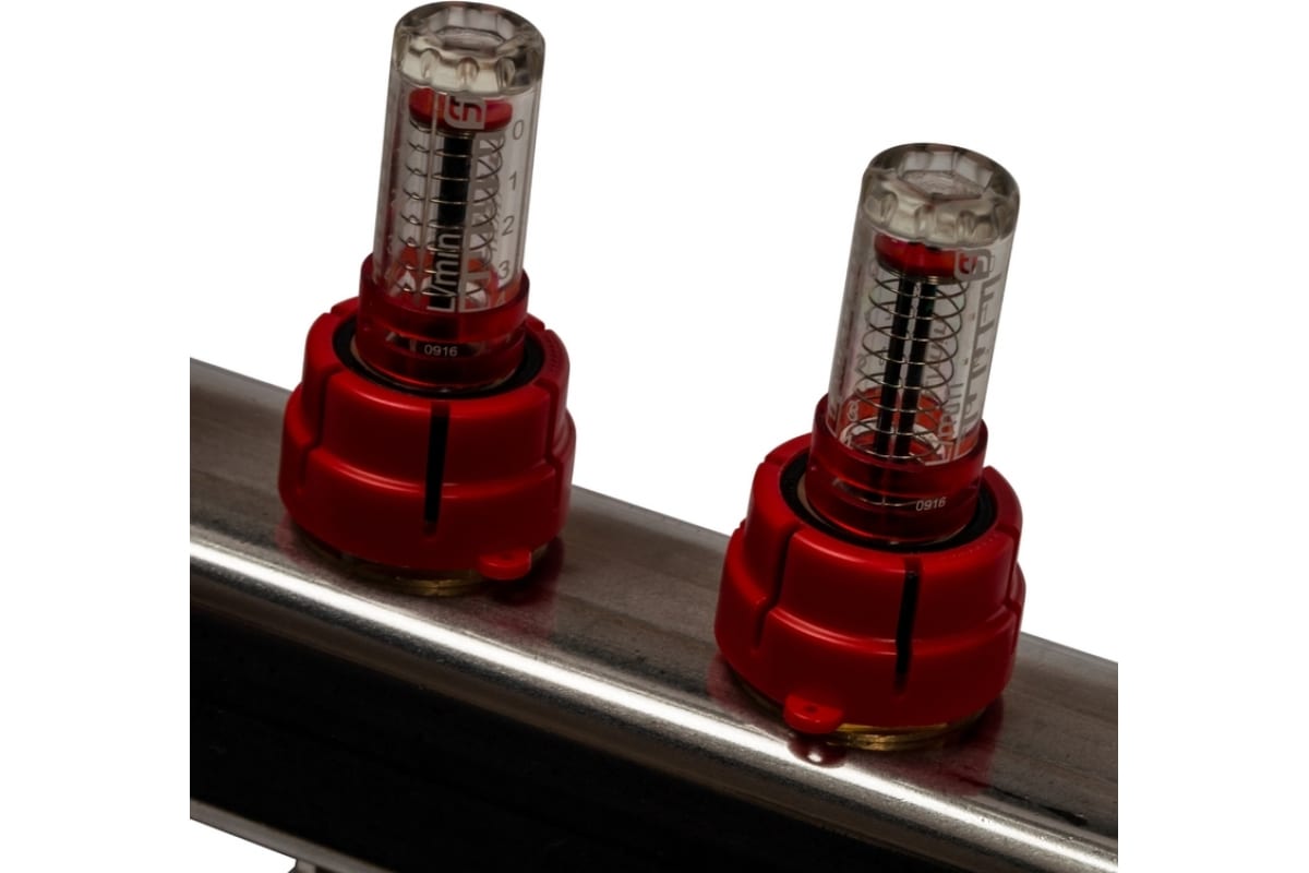 Коллектор из нержавеющей стали с расходомерами используется в системах отопления для подачи, распределения и регулировки потока теплоносителя. Наличие расходомеров дает возможность контролировать расход воды.