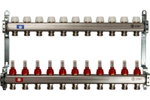 Коллекторная группа 11 отводов 1"x3/4"(18)EK с расходомерами Stout (нерж.сталь) (SMS-0917-000011)