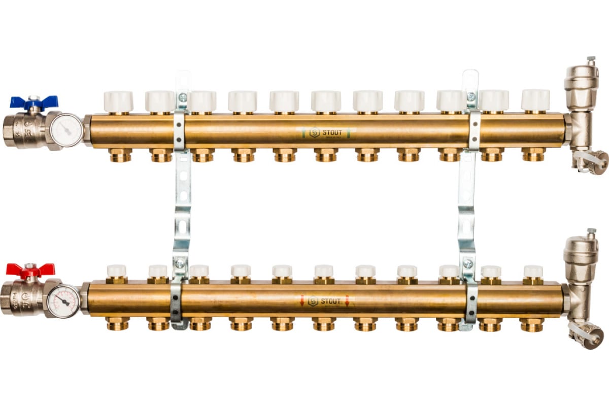 Коллекторная группа 11 отводов 1"x3/4"(18)EK в сборе без расходомеров Stout (латунь) (SMB-0468-000011)