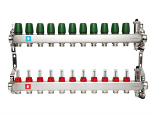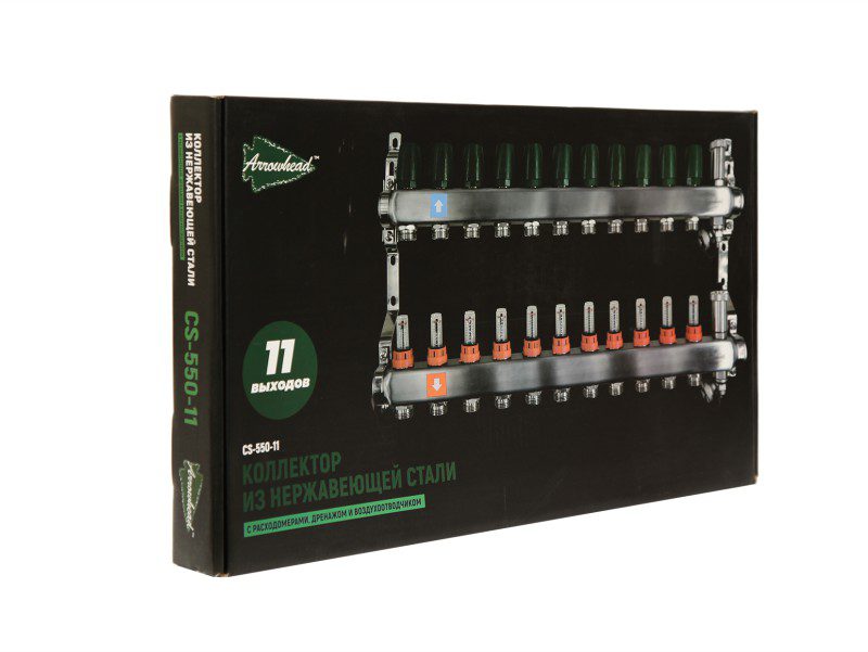Коллекторная группа 11 отводов 1"х3/4" Arrowhead с расходомерами, дренажом и воздухоотводчиком нерж.сталь (CS-550-11)