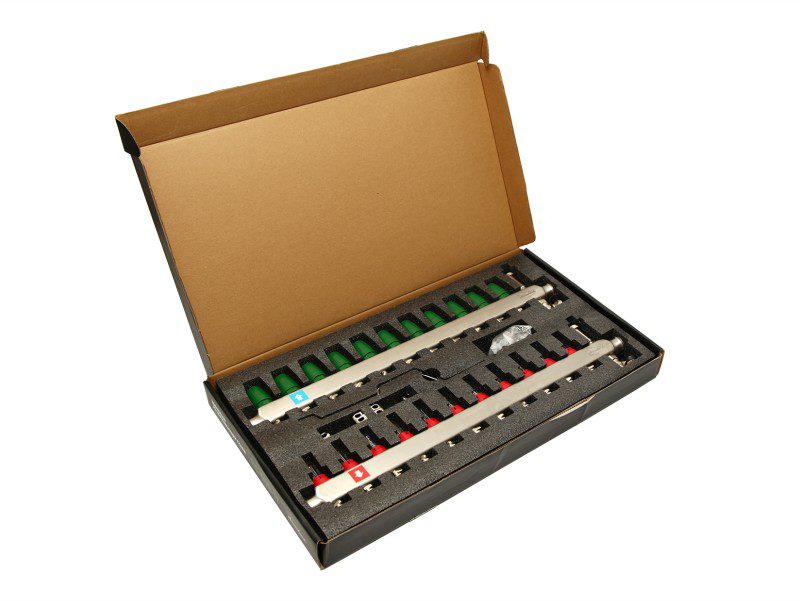 Каждая коллекторная группа состоит из подающего и обратного коллекторов из нержавеющей стали SS304 и фитингов из латуни CW617N. Обратные коллектора оборудованы регулирующими клапанами, а подающие - запорными клапанами (серия CS-300-…) или расходомерами (ротаметрами) (серия CS-500(550)-…). Серия CS-550-… каждая подающая и отводящая часть оснащена своим элементом для дренажа и воздухоотводчиком. Условный диаметр коллекторов – 1"". Количество выходов – от 2 до 12.