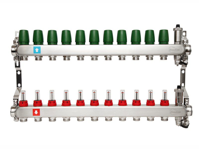Коллекторы из нержавеющей стали ARROWHEAD играют ключевую роль в системах отопления и теплых полов, обеспечивая эффективное распределение теплоносителя, что способствует стабильной работе гидравлики системы. Принцип действия коллекторов основан на следующих аспектах: