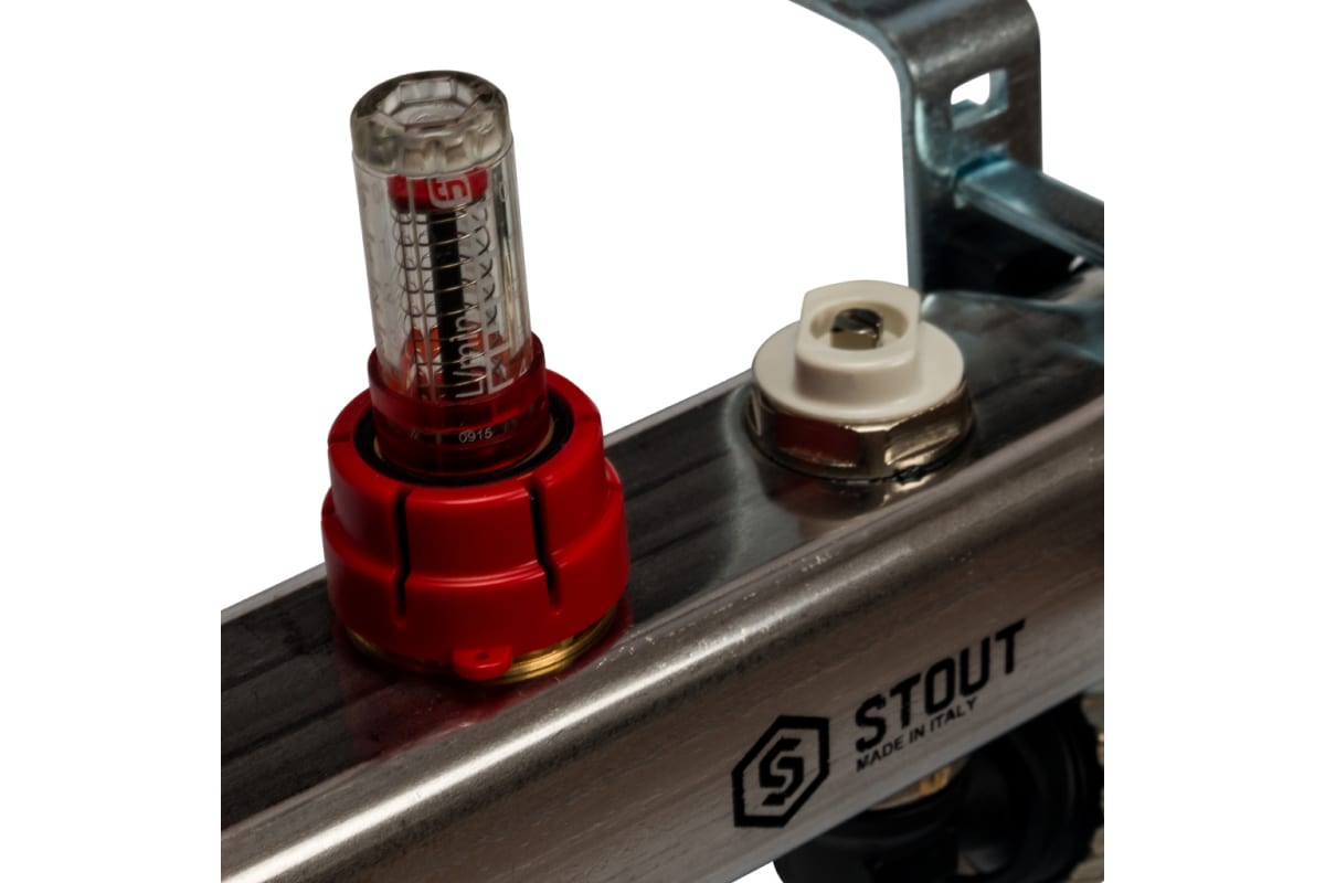 Коллекторная группа 12 отводов 1"x3/4"(18)EK с расходомерами, с клапаном вып. воздуха и сливом Stout (нерж.сталь) (SMS-0927-000012)