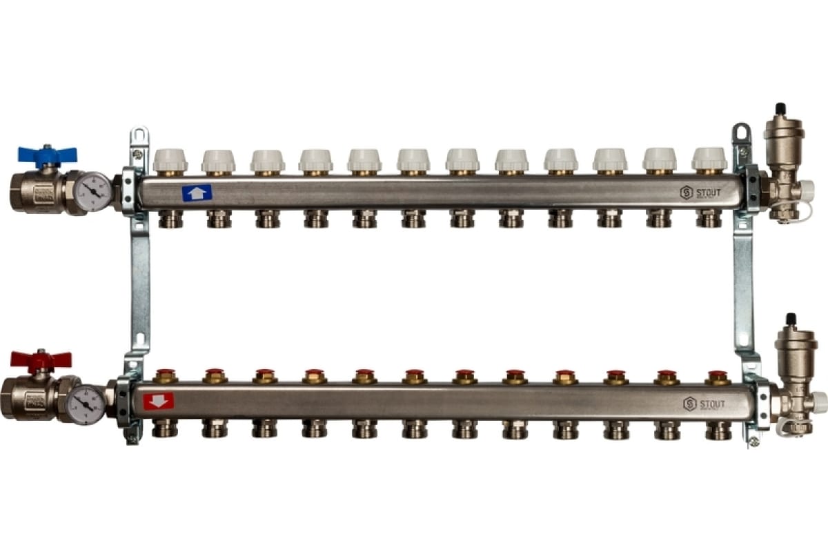 Коллекторная группа 12 отводов 1"x3/4"(18)EK в сборе без расходомеров Stout (нерж.сталь) (SMS-0912-000012)