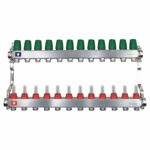 Коллекторная группа 12 отводов 1"х3/4"(евроконус) Arrowhead с расходомерами (нерж.сталь) (CS-500-12)