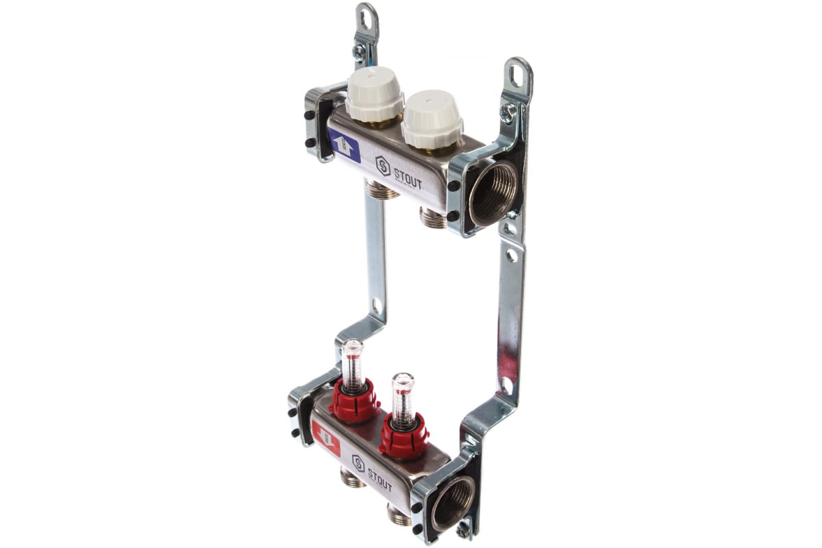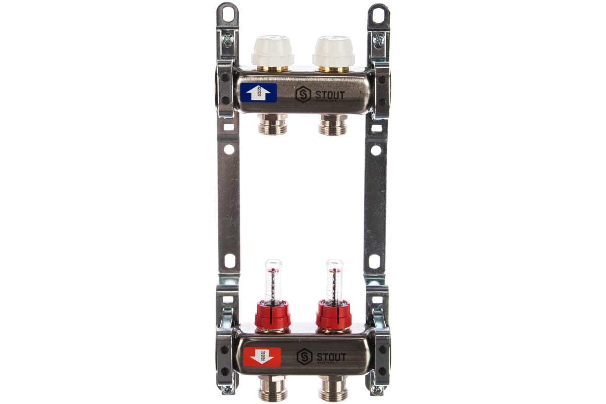 Коллекторная группа 2 отвода 1"x3/4"(18)EK с расходомерами Stout (нерж.сталь) (SMS-0917-000002)