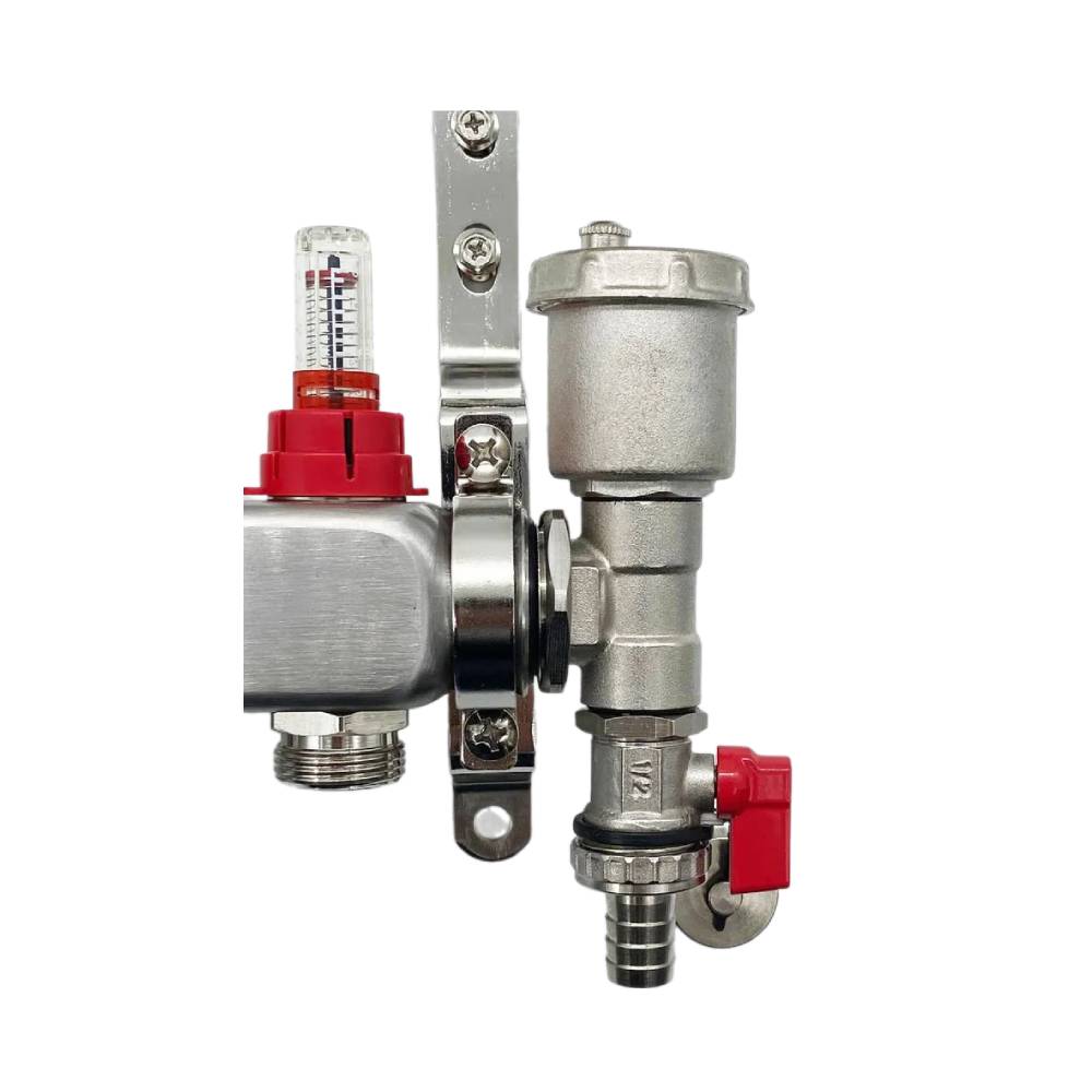 Корпус коллектора ViEiR производят из нержавеющей стали и максимально устойчив к агрессивным средам. Это значит что такая коллекторная группа подойдет для работы с антифризами и незамерзающими жидкостями. Коллектор имеет наружную и внутреннюю резьбу на 1". Соединение фитингов осуществляется на уплотнителях выполненных из EPDM резины, что значительно упрощает сборку и монтаж. Коллекторы оснащены отверстиями на 10 выходов диаметром 3/4" под евроконус. Коллекторная группа оснащена воздухоотводчиком с терминальным узлом, который представляет собой прибор для автоматического удаления газов, объединенный в одном узле с краном для слива или наполнения жидкостью системы.