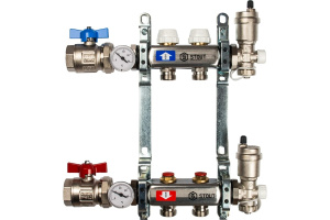 Коллектор из нержавеющей стали в сборе без расходомеров STOUT используется в зданиях с поквартирной разводкой трубопроводов. Изделие может использоваться с трубами из любых материалов. Коллектор служит для подачи и распределения теплоносителя.