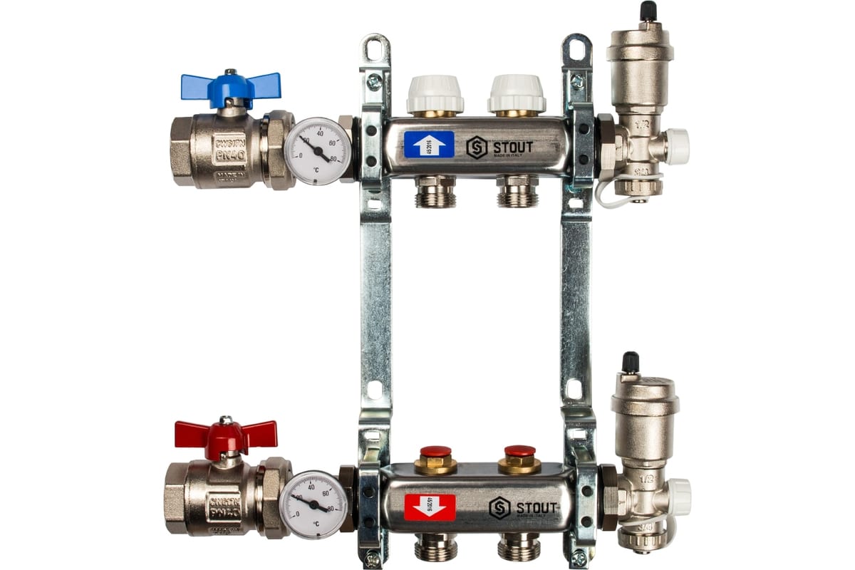 Коллекторная группа 2 отвода 1"x3/4"(18)EK в сборе без расходомеров Stout (нерж.сталь) (SMS-0912-000002)