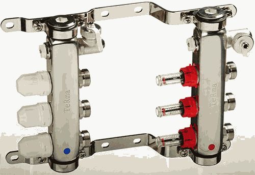 Коллекторная группа 3 отвода 1"*3/4"(18)EK с расходомерами TeRma (нерж.ст) (14103)
