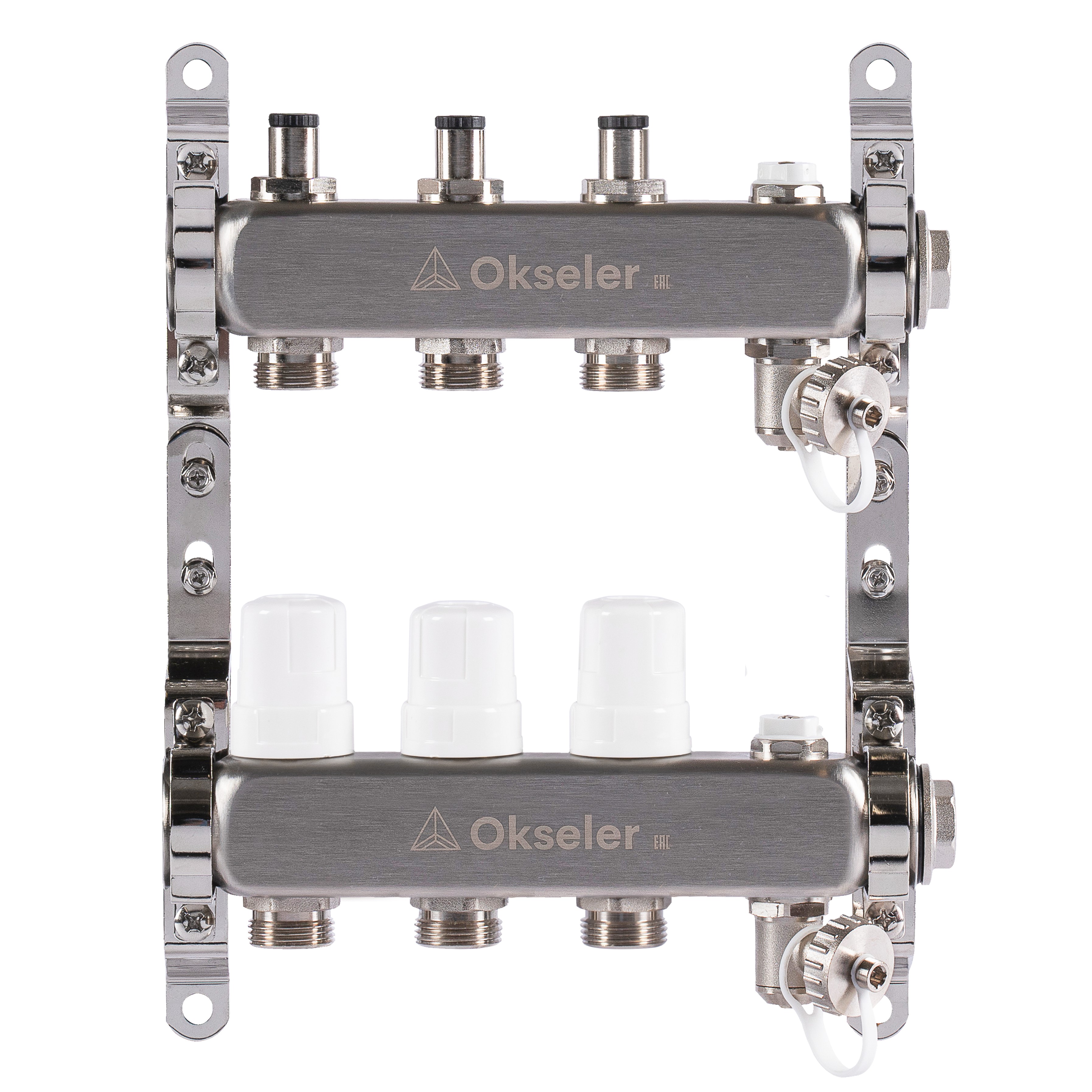 Коллекторный блок Okseler с тремя выходами — это надежный элемент распределительной системы, предназначенный для точного управления потоками теплоносителя в небольших системах теплого пола. Устройство изготовлено из прочной нержавеющей стали и может быть дополнено сервоприводами для автоматизации. Идеален для помещений с несколькими контурами обогрева, где требуется высокая точность настройки температурных параметров.