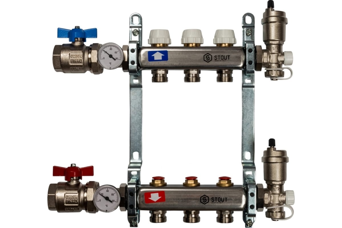 Коллекторная группа 3 отвода 1"x3/4"(18)EK в сборе без расходомеров Stout (нерж.сталь) (SMS-0912-000003)