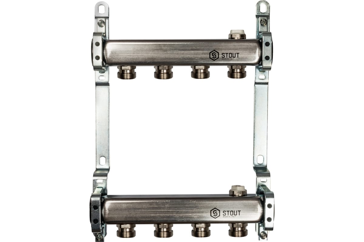 Коллектор из нержавеющей стали для радиаторной разводки STOUT используется для подачи и распределения теплоносителя по циркуляционным кольцам. Данная модель подойдет для подключения к системам радиаторного отопления или теплого пола.